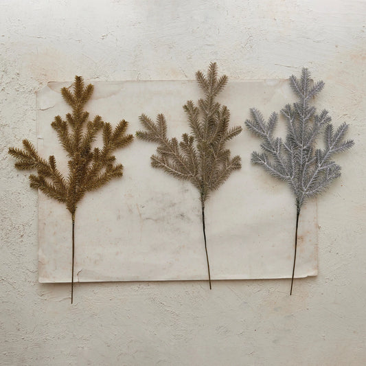 Faux Pine Stem with Glitter