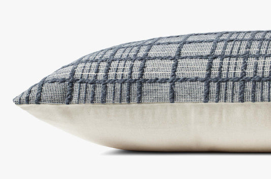 Navy Woven Plaid Lumbar Pillow