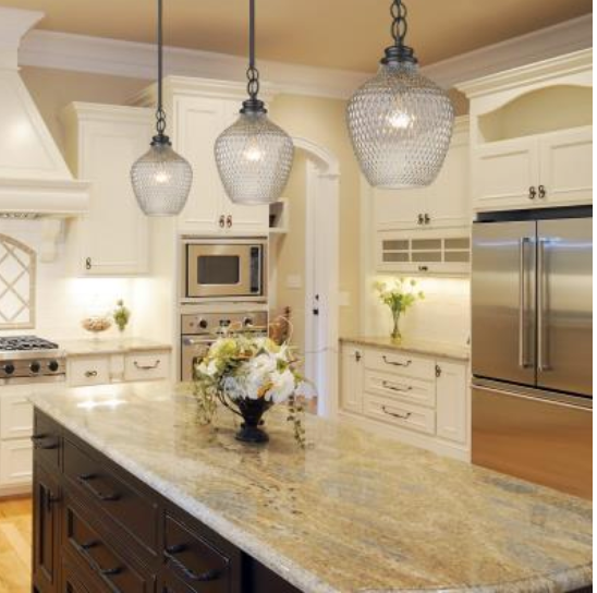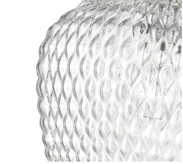Retro with a flirty flair, Addi is ideal for eclectic spaces. The transitional fixtures are feminine with a vintage look and organic form. The diamond-cut pattern of the clear, curved glass refracts light and adds visual interest. An open-bottom shade creates task lighting and allows for easy bulb changes. Hang this pendant alone or group over a kitchen island.