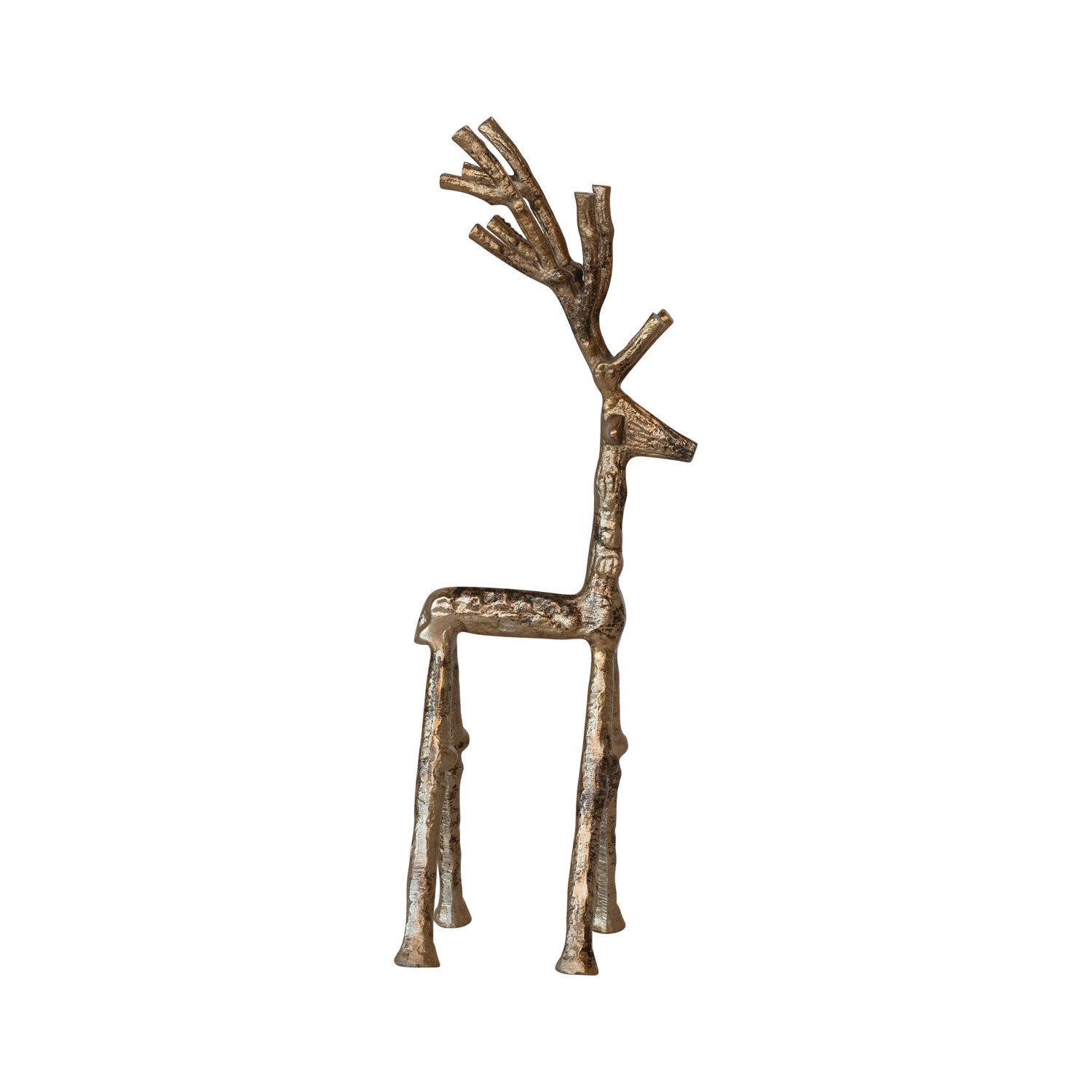 5-1/2"L x 4"W x 15-3/4"H Cast Aluminum Twig Deer, Antique Gold Finish