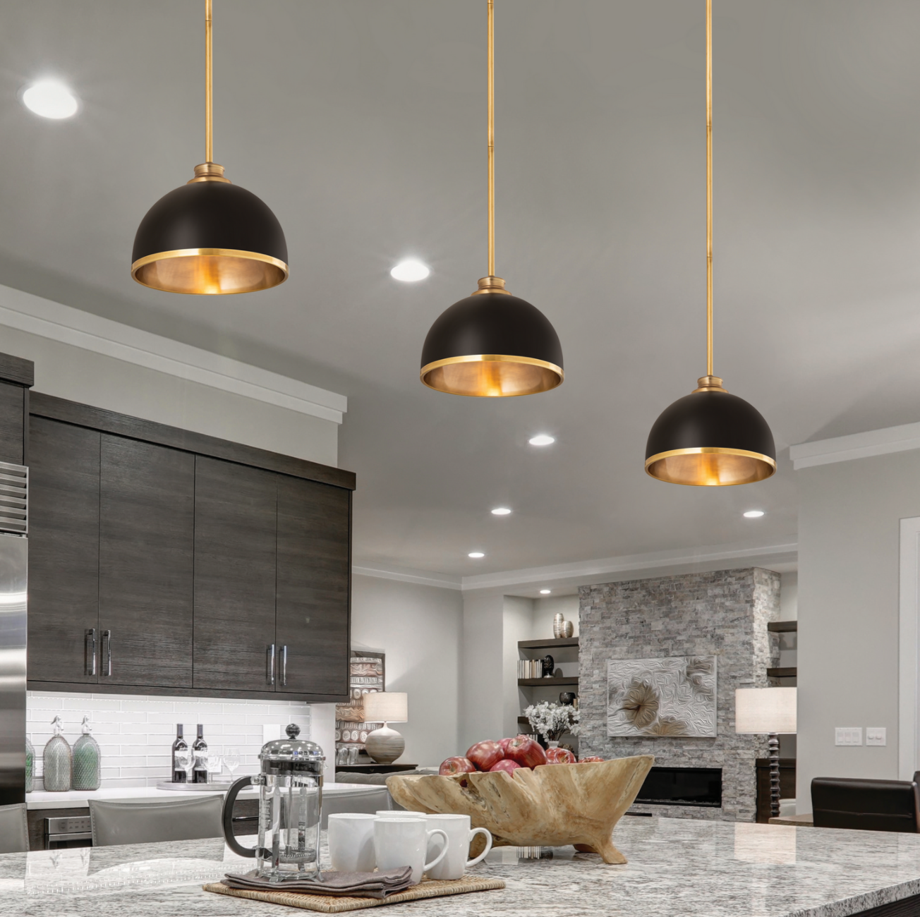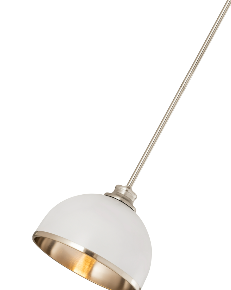 Easy elegance follows this domed metal one-light pendant with a crisp industrial influence and minimalist silhouette. A domed shade fashioned of matte black finish stainless steel is trimmed in warm rubbed brass finish metal with a rubbed brass finish down rod and canopy. This contemporary pendant is adaptable to a variety of décor schemes including farmhouse, modern industrial, and urban modern.