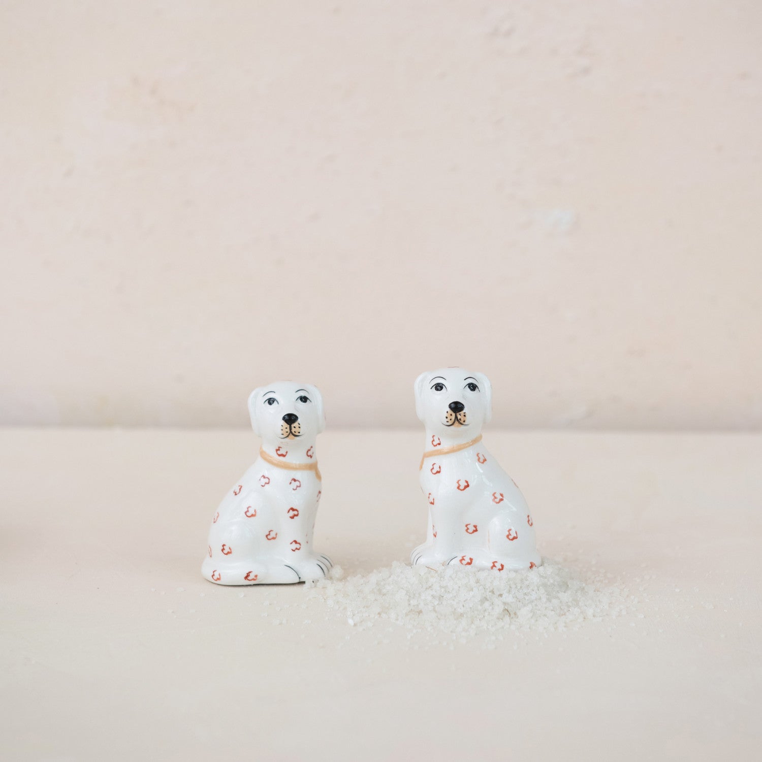 Add a playful touch to your table with these charming ceramic dog-shaped salt and pepper shakers. Crafted from glazed ceramic, each piece features sweet hand-painted details and a classic sitting-dog silhouette that brings personality to everyday dining.