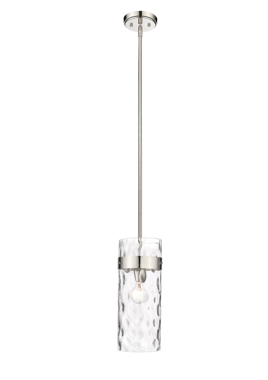 Hanging from your ceiling like a beautiful piece of art, this pendant light boasts a cylinder glass shade with a lovely rippled texture. Perfect for a hallway or kitchen, this light is crafted in steel with a polished nickel finish and is sure to beautify your home with an elegant and sophisticated design.