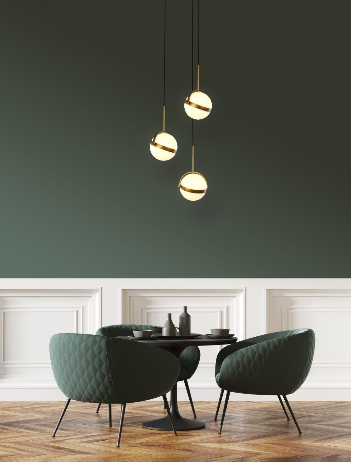 Globo is a statement in modernity-a simple metal band is wrapped around a glowing white orb that can be tilted in different directions to achieve your desired look. Offered in both Matte Black and Brushed Gold finishes.