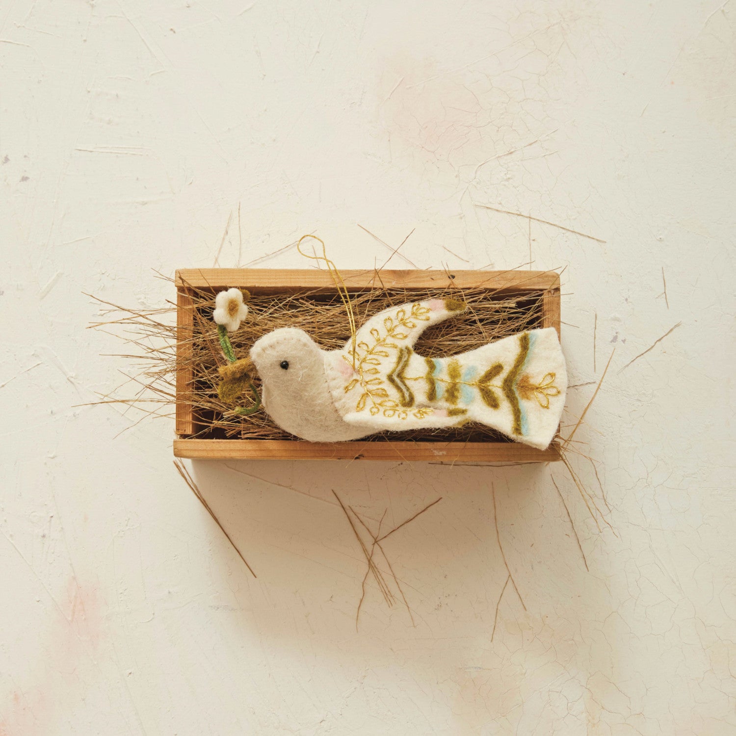 6"L Handmade Wool Felt Dove Ornament w/ Embroidery, Multi Color