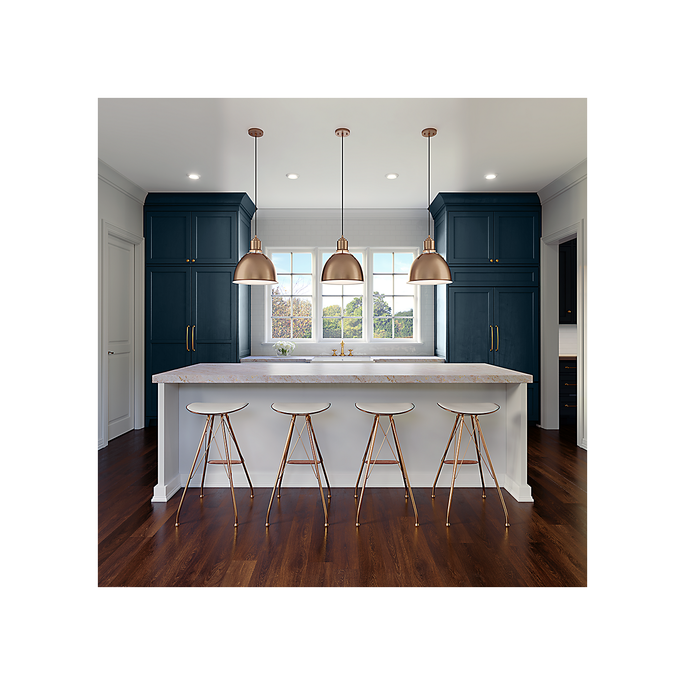 Contoured shape resembling an old-fashioned barn light, offers drama and formality while evoking a retro feel