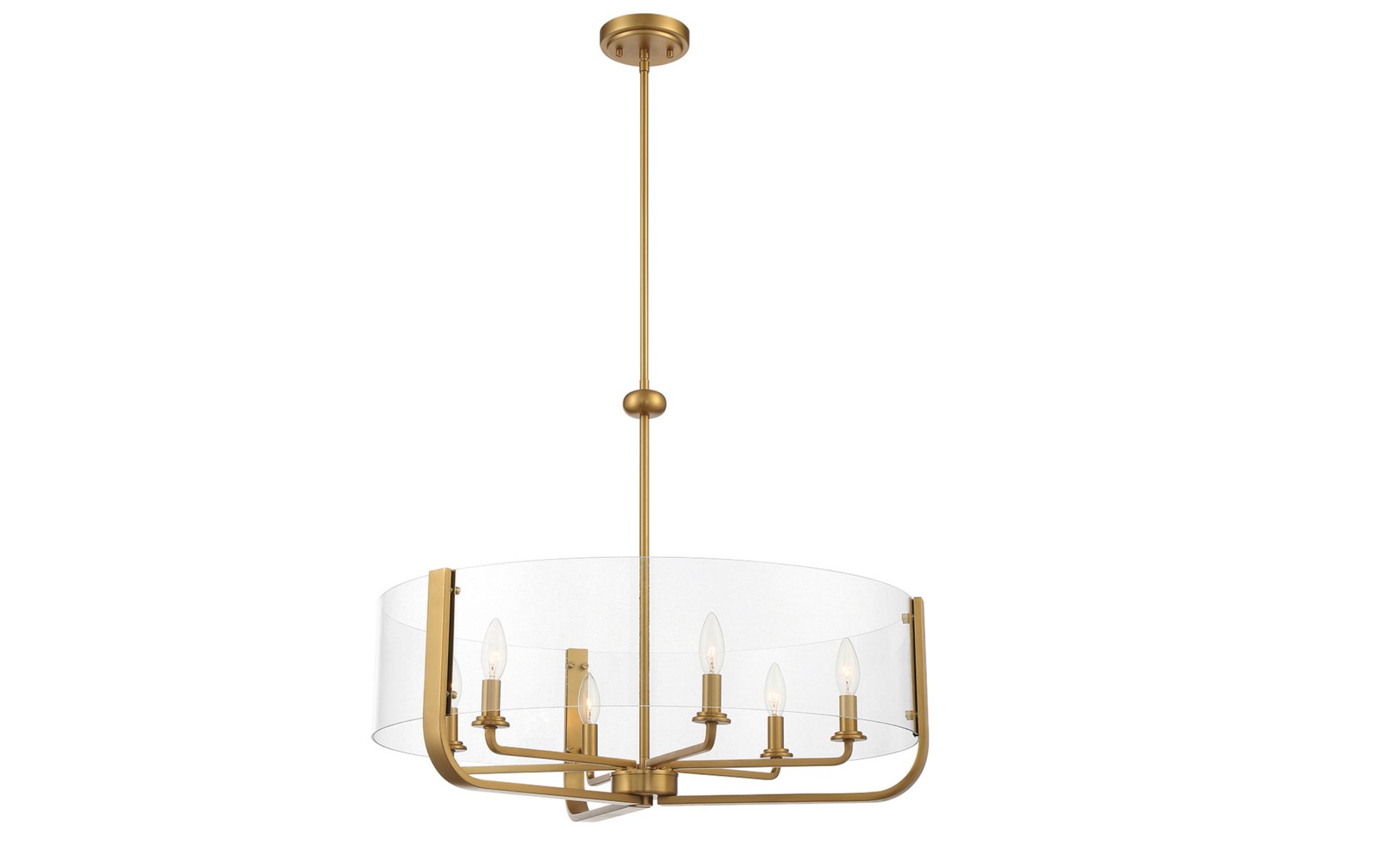 Hand-blown clear glass is seamlessly suspended by a simple frame, highlighting the charm of a candelabra in this transitional piece.