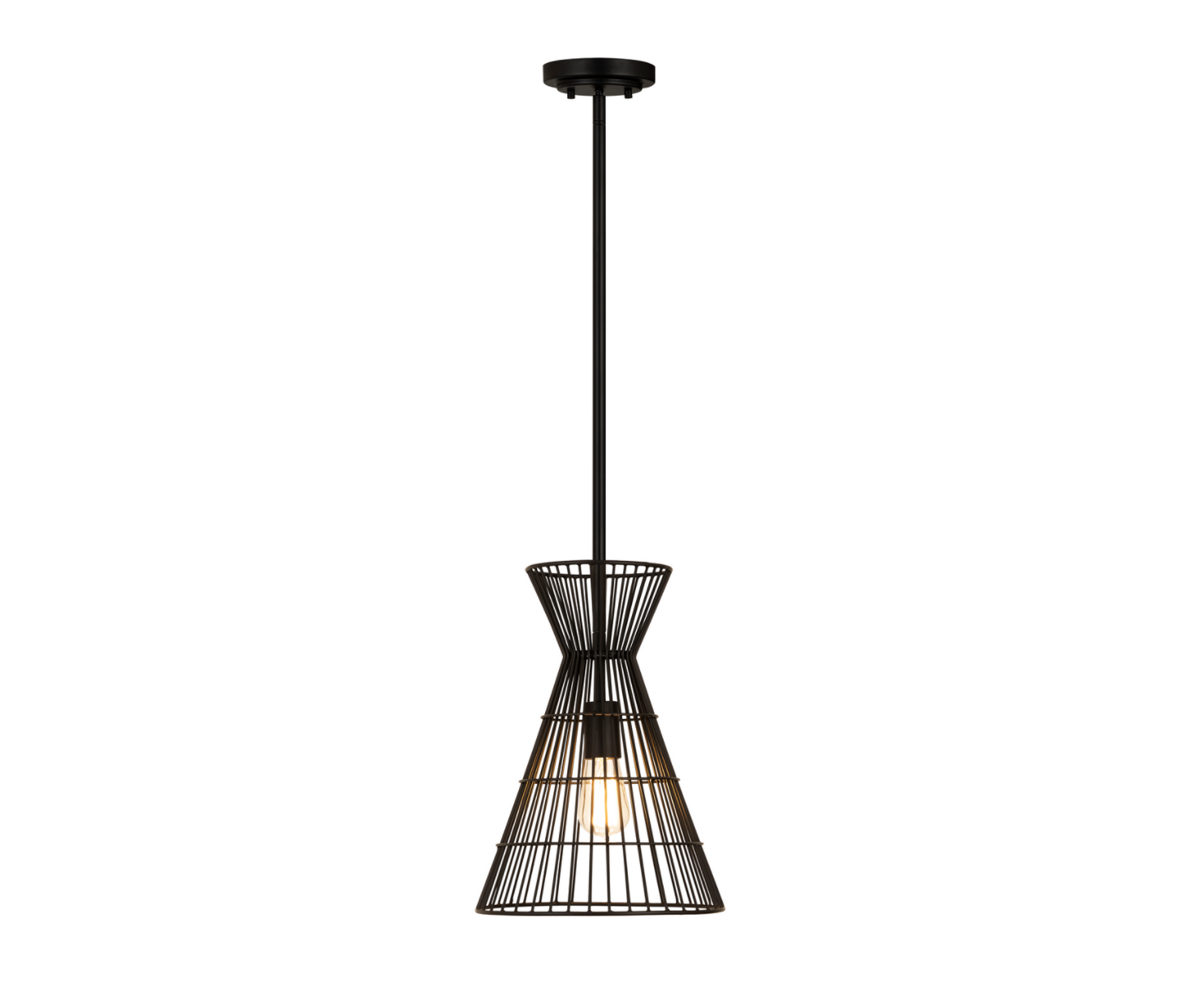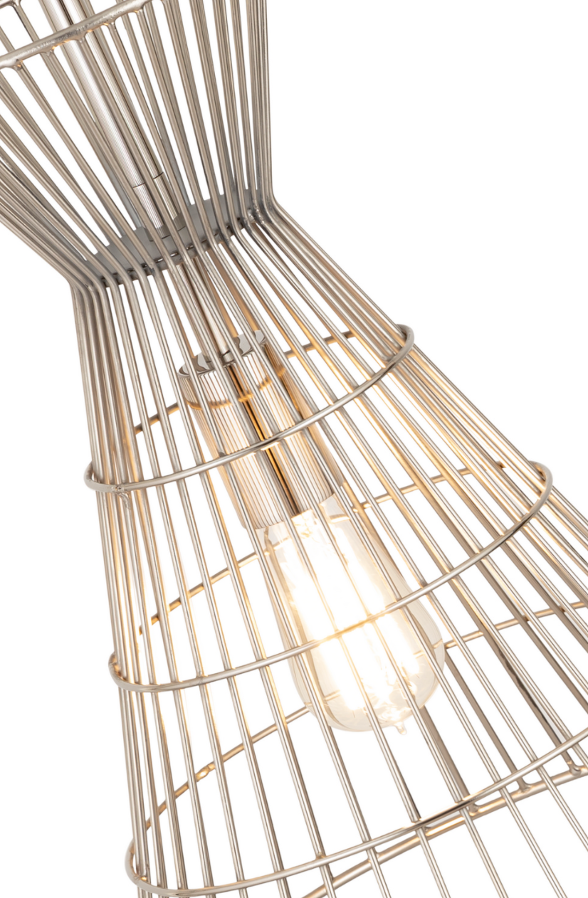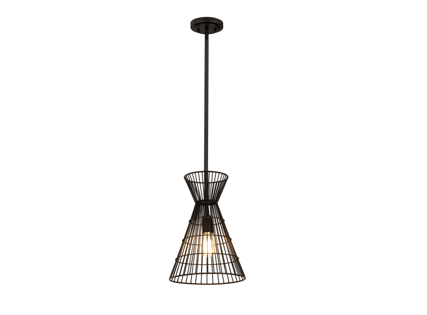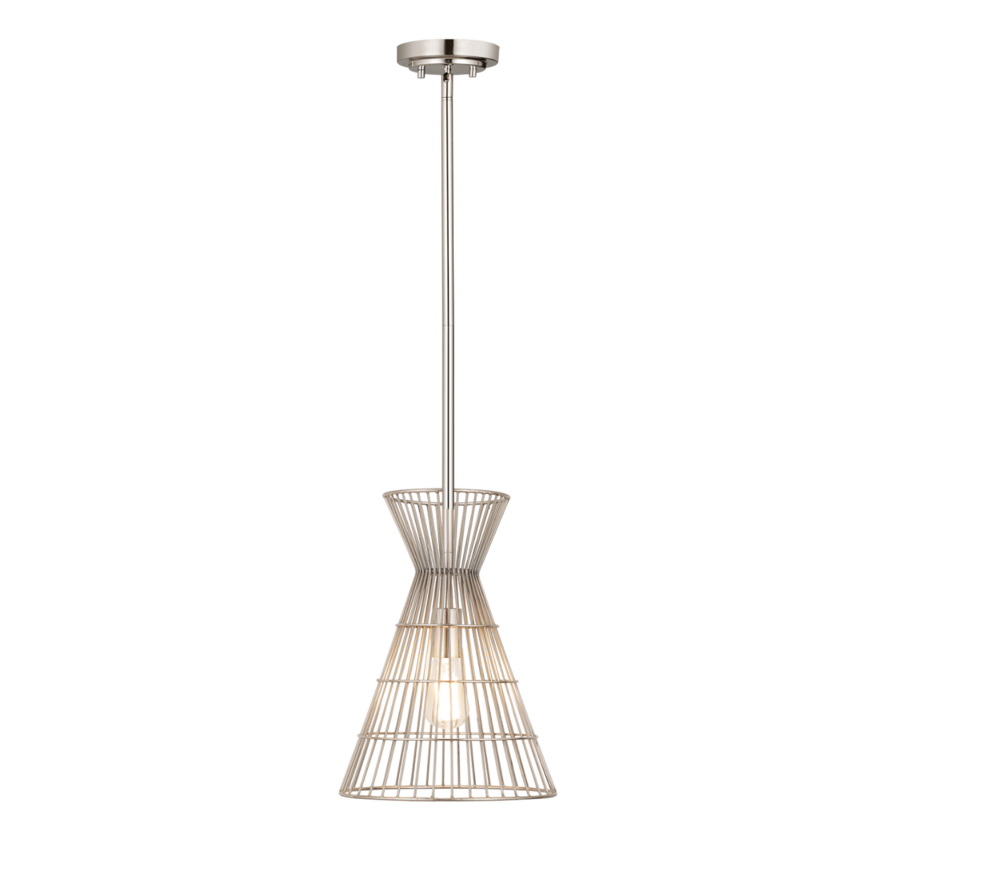Indulge in a love of industrial aesthetics with a light fixture styled to deliver casual, easygoing personality in a targeted space. This mini-pendant from the Lolita collection offers a bold polished nickel finish iron frame creating a geometric silhouette and a cage-style wire design. A matching down rod and canopy offer palette consistency and an energy-inducing look to punctuate any space.