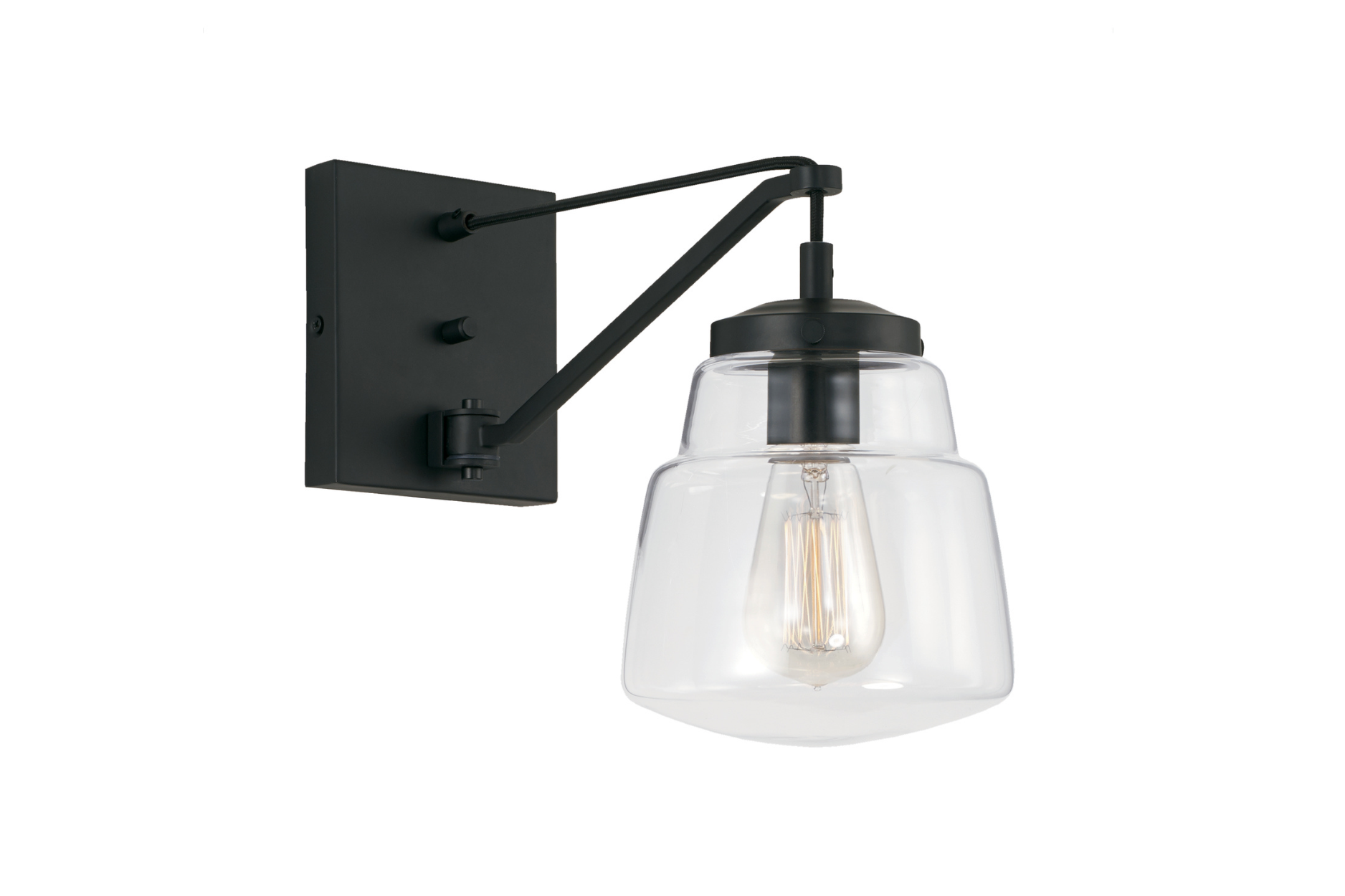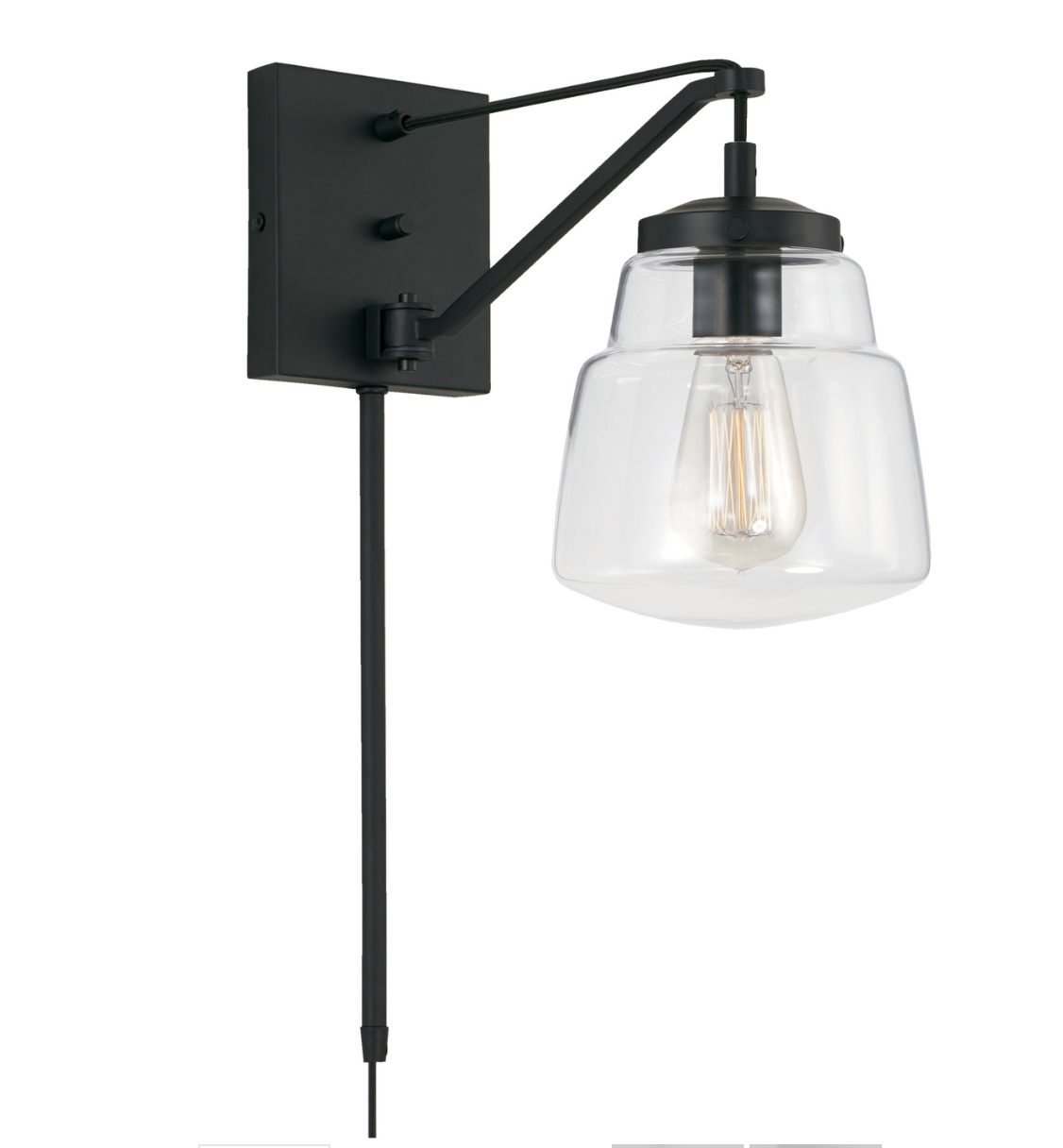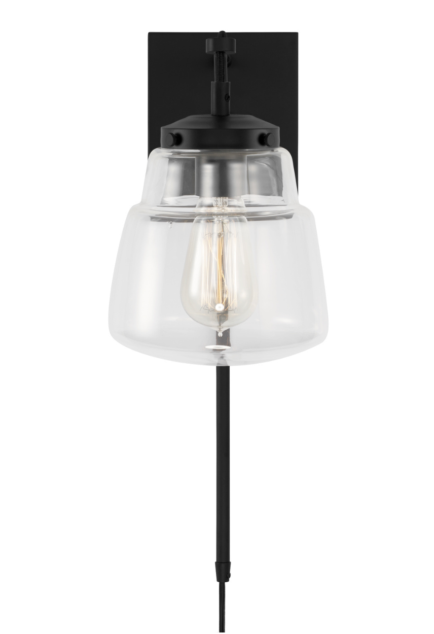 With a fresh spin on diner-inspired glass, the Macklin 1-Light Sconce brings a refined retro vibe to any space. The Aged Brass finish accents the pronounced rivet details and sculptural silhouette of the plug-in optional fixture.