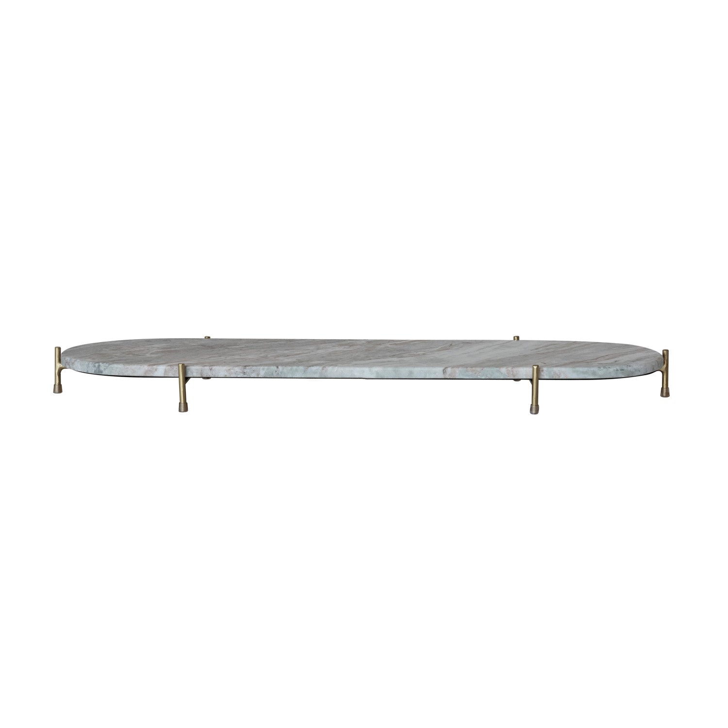 32"L x 9-1/2"W x 2-1/2"H Oval Decorative Marble Tray w/ Stand, Grey Melange & Gold Finish, Set of 2,
