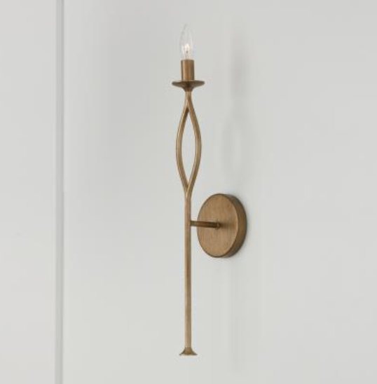 Illuminate luxury with the Marianne Sconce. The elongated, elegant form is crafted of a curved, open detail topped with the bobeche and short candle sleeve, while the handcrafted Mystic Luster finish creates subtle shimmer and texture.