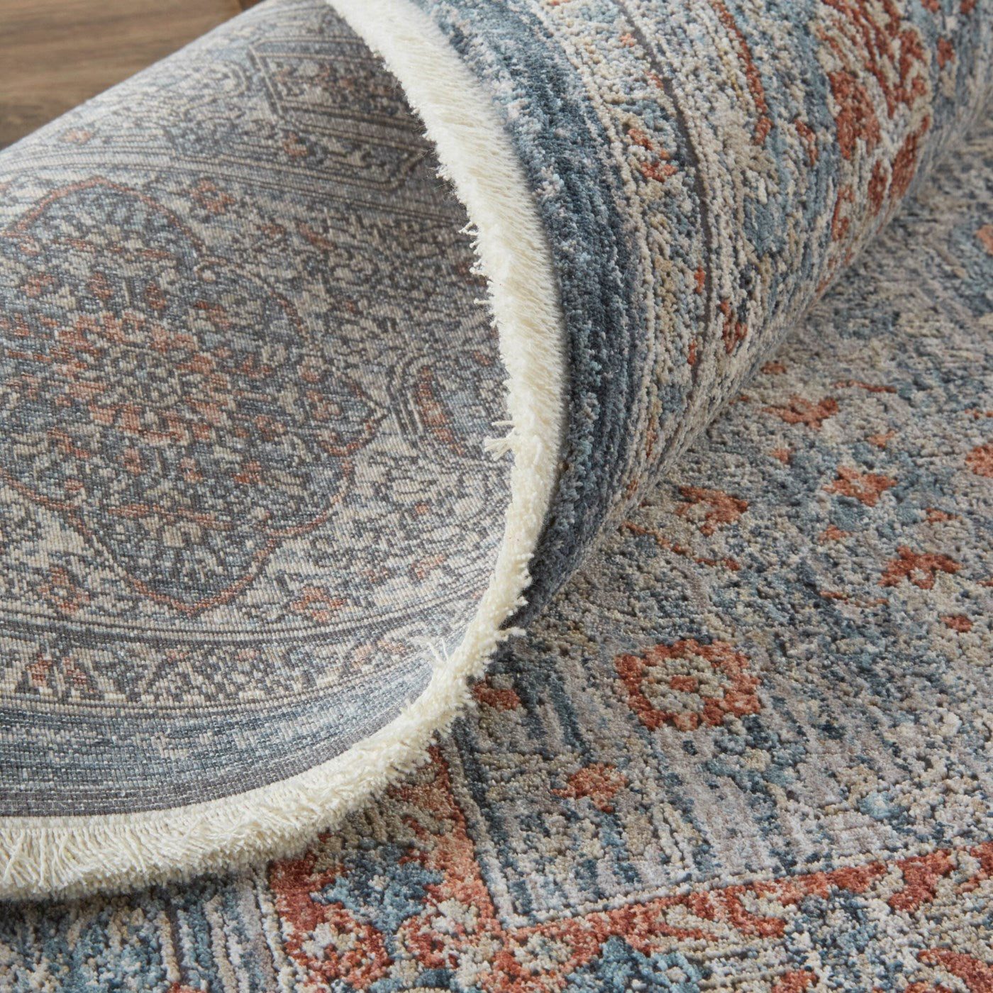 From cottage to mansion, from loft to palace, Marquette is certain to gracefully adorn any abode with a flourish of casual grandeur. Traditional Persian motifs are rendered elegantly in space-dyed tones of denim, sky, and rust amid a background of enchanting and versatile neutrals. The look and feel of a rustic heirloom is now effortlessly attainable when luxury styling meets modern technology. Marquette is a collection sure to please both connoisseur and consumer alike.