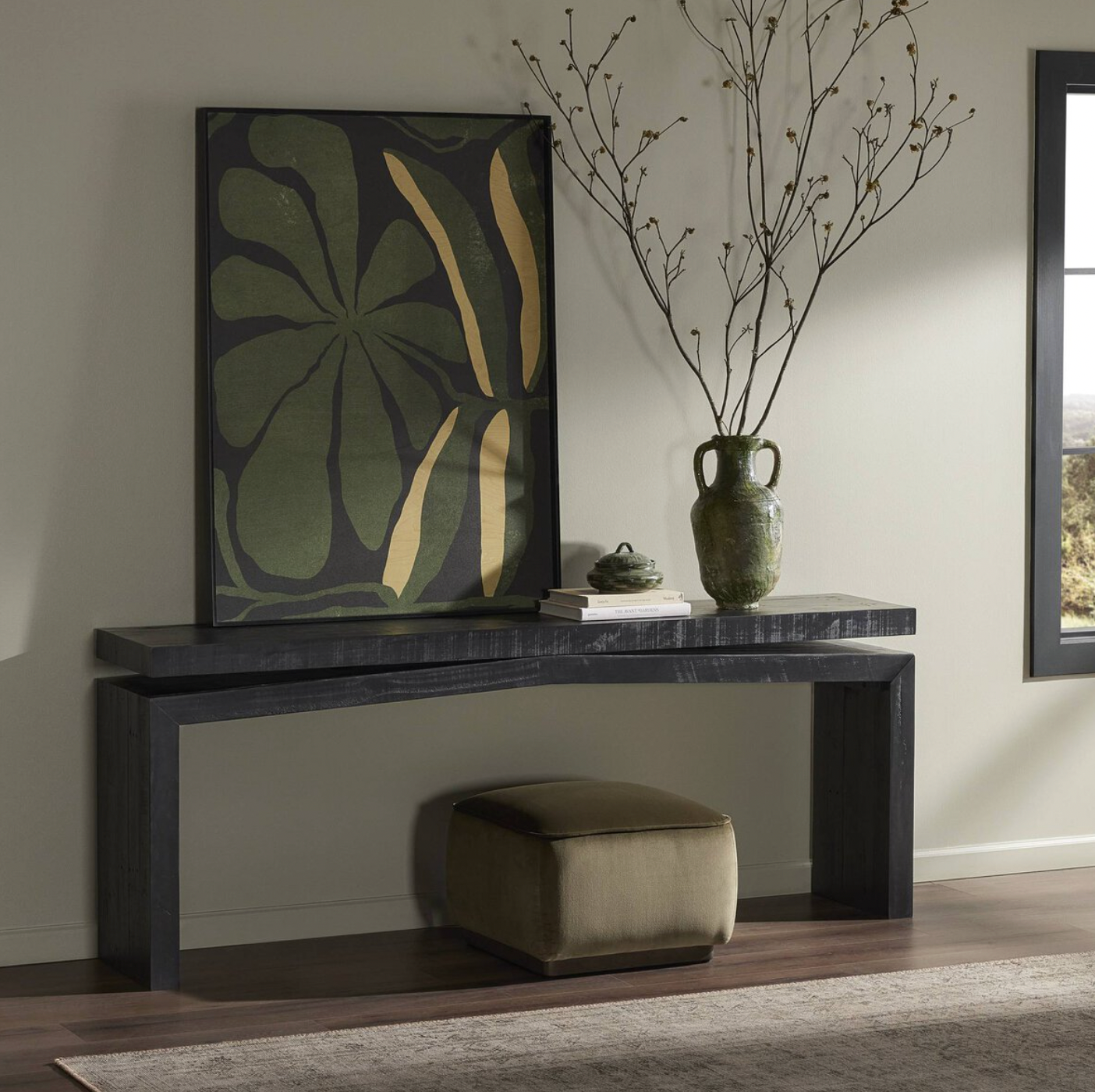 Simple and streamlined to showcase natural beauty. Finished in a traditional black, solid reclaimed pine forms a modern media console with rustic vibes.