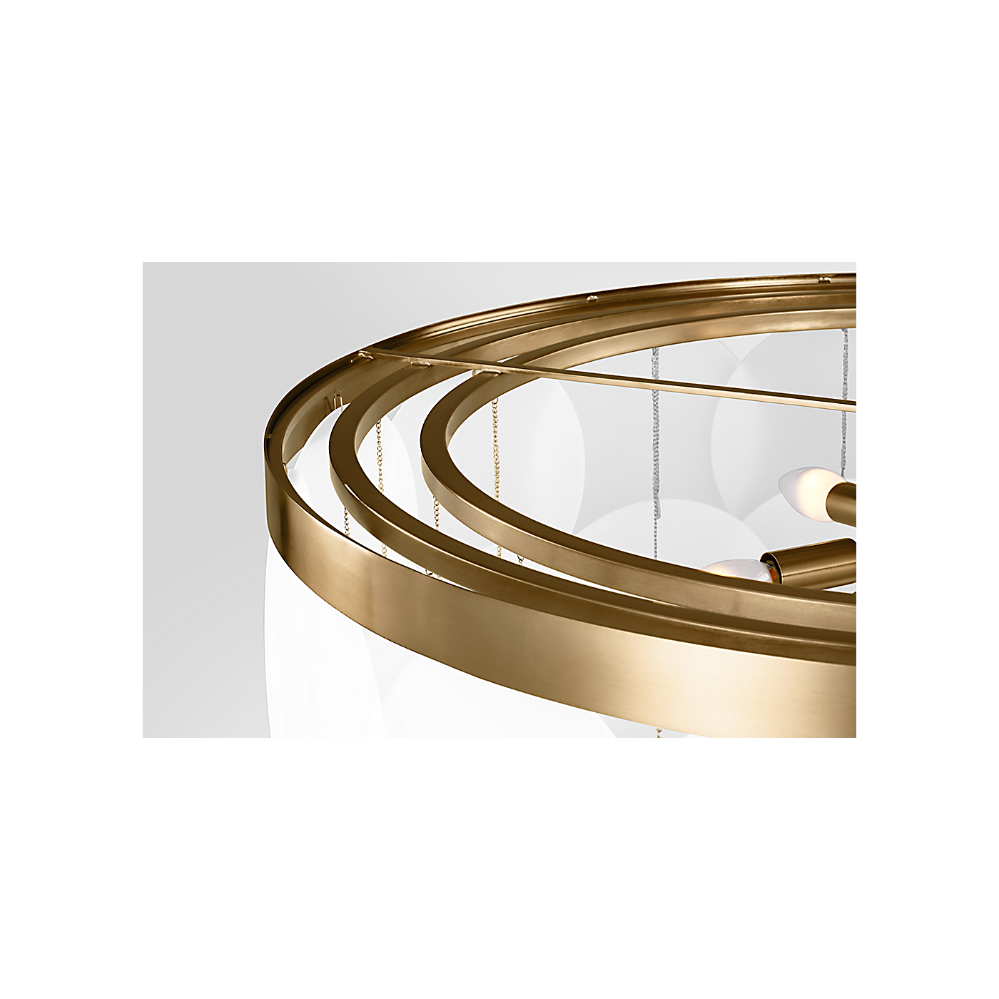 Full of structure and movement the Mellita chandelier gracefully positions multiple tiers of oversized etched glass disks.