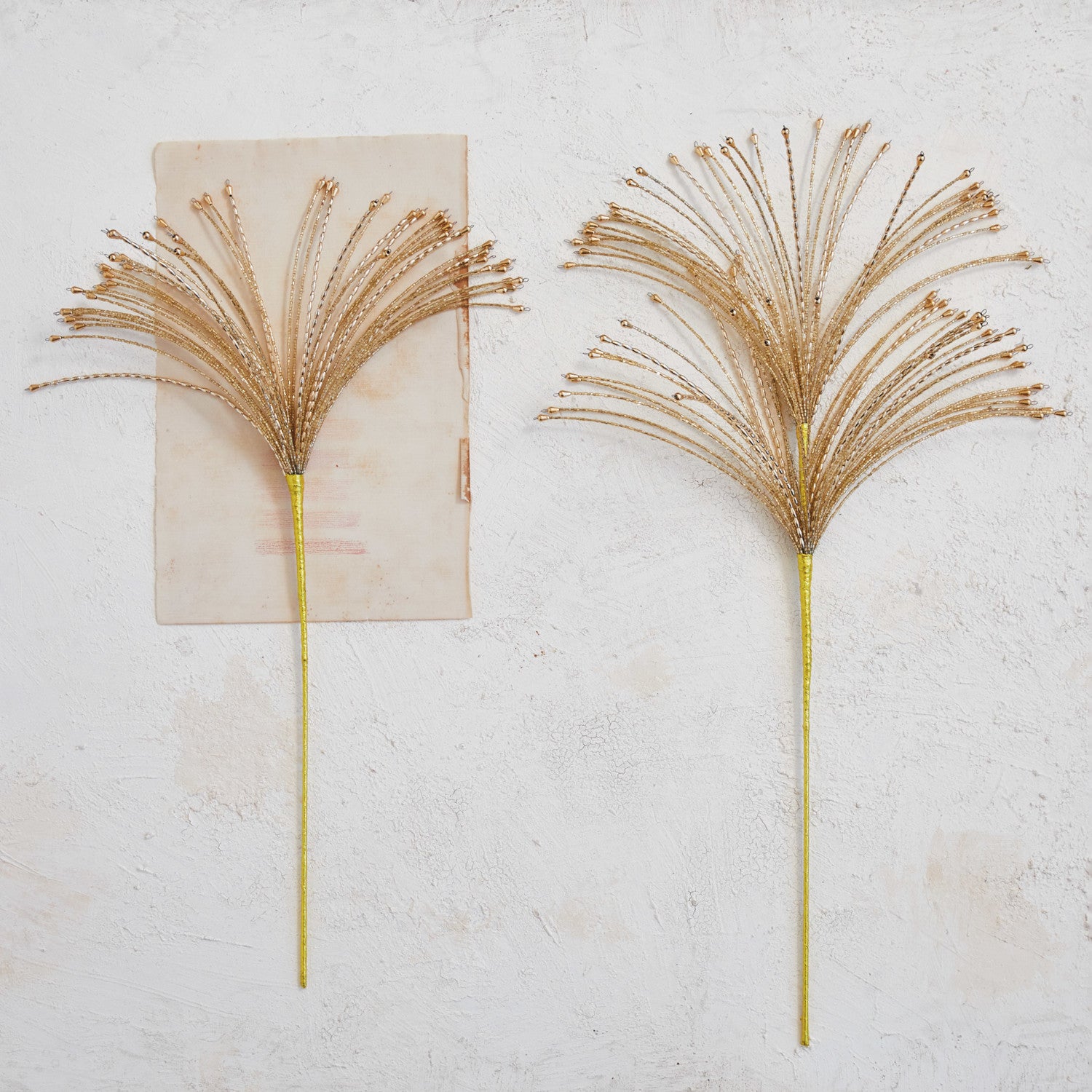 This metal and glass beaded spray is a stunning and sparkling piece that will enhance any space. The spray features metal, glass, and acrylic beads that have a gold finish and a soft texture, creating a chic and elegant effect. The spray also has an organic shape that gives it a natural and whimsical appeal, creating contrast and balance. The spray is made of metal, glass beads, and acrylic beads, with a durable and smooth quality. It is easy to clean and maintain. The spray measures 13 inches in length, 13 inches in width, and 26 inches in height. The spray is a versatile and stylish piece that can be placed in a vase, basket, or wall, or for making a wreath or bouquet. It is a perfect addition to any space that needs some glamour and shine. A stunning and sparkling metal and glass beaded sprays with a gold finish and an organic shape. A perfect addition to any space that needs some glamour and shine. Ideal for placing in the vase, basket, or wall, or for making a wreath or bouquet.