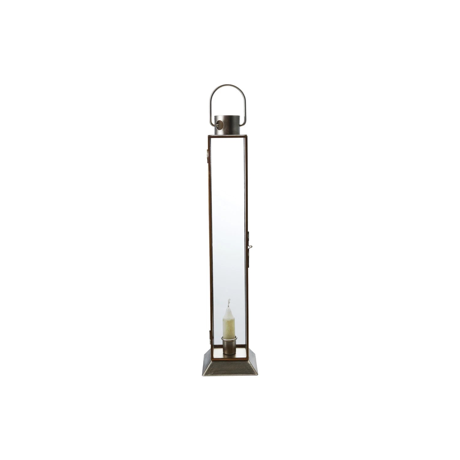 3-1/2" Square x 14-1/4"H Metal & Glass Lantern Taper Holder, Gold Finish