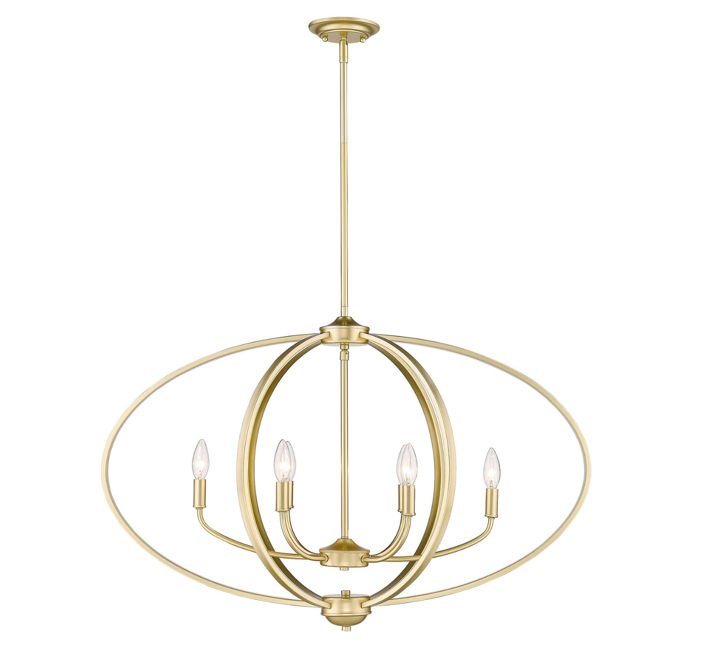 This transitional and industrial-chic design is ideal for lofts, farmhouses, and contemporary interiors. Curvaceous arms sit inside simple round frames. The extensive collection includes wall and ceiling fixtures. Fixtures may be purchased with or without metal mesh shades. The optional shades shield the exposed bulbs of these elemental fixtures. Available in multiple finishes, this elongated, oval linear pendant illuminates a kitchen bar, dining table, or similar area without interfering with activity at the surface.