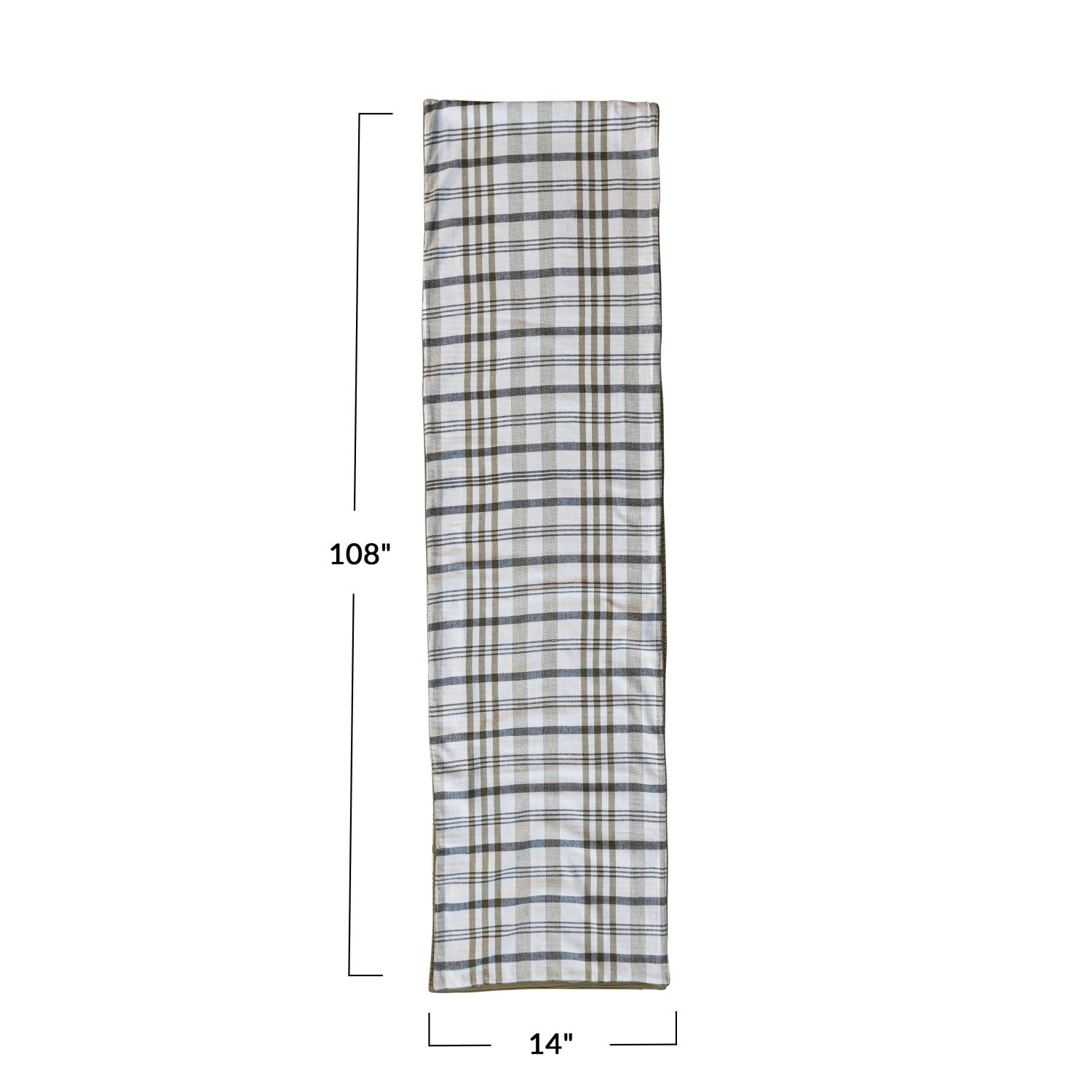 108"L x 14"W Stonewashed/Textured Cotton Table Runner w/ Woven Cotton Back, White & Green Plaid