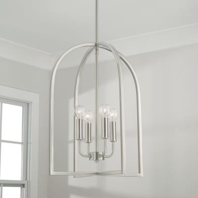 Bring curve appeal to any space with the soft contours and arched forms of the Terrah Foyer. The Brushed Nickel finish creates a classic aesthetic that mixes with any style.