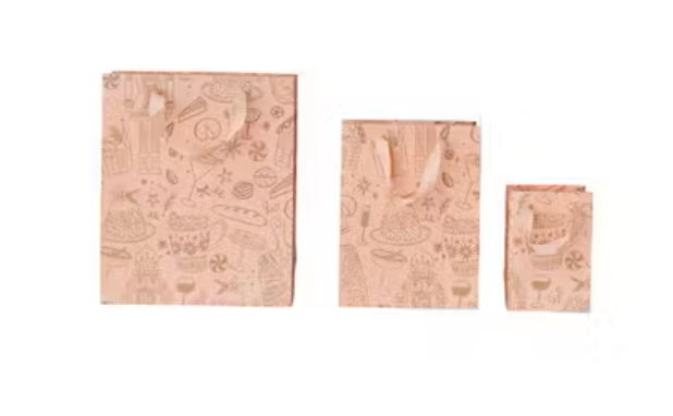 Handmade Printed Recycled Paper Gift Bags w/ Christmas Multi Color