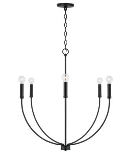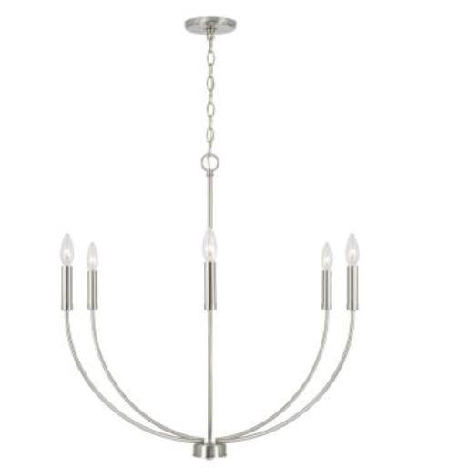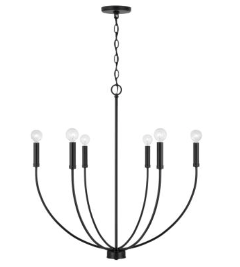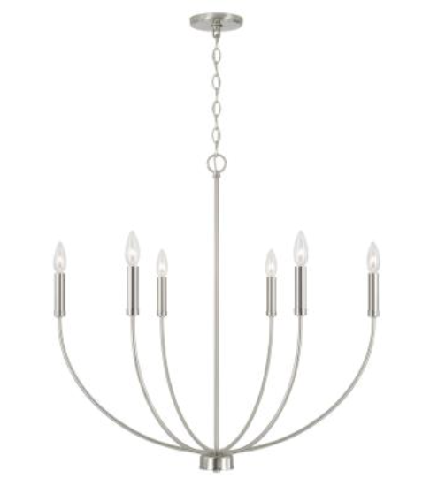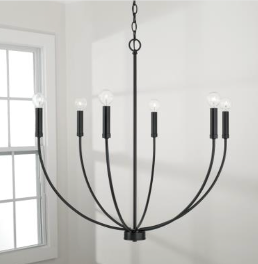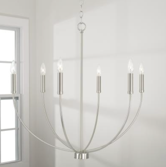A classic shape refreshed with sleek contours and sweeping curves, the Ainsley 6-Light Chandelier makes a statement that suits every style. The elongated arms and open silhouette invites standout style that doesn't overpower, while the Matte Black, Brushed Nickel and Aged Brass finishes creates sophisticated contrast.