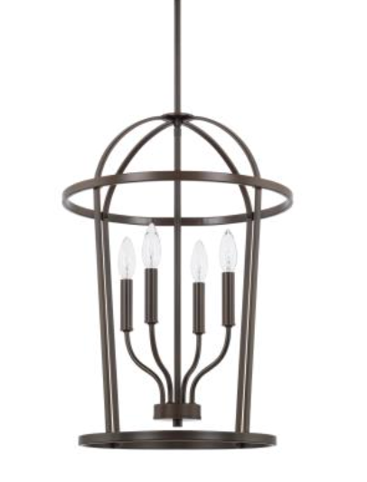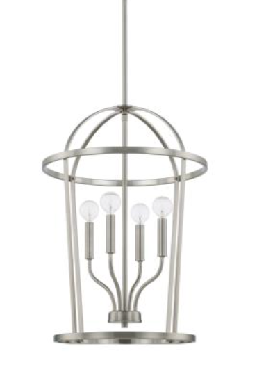 4 light foyer fixture with Matte Black, Bronze, Brushed Nickel or Aged Brass finishes.