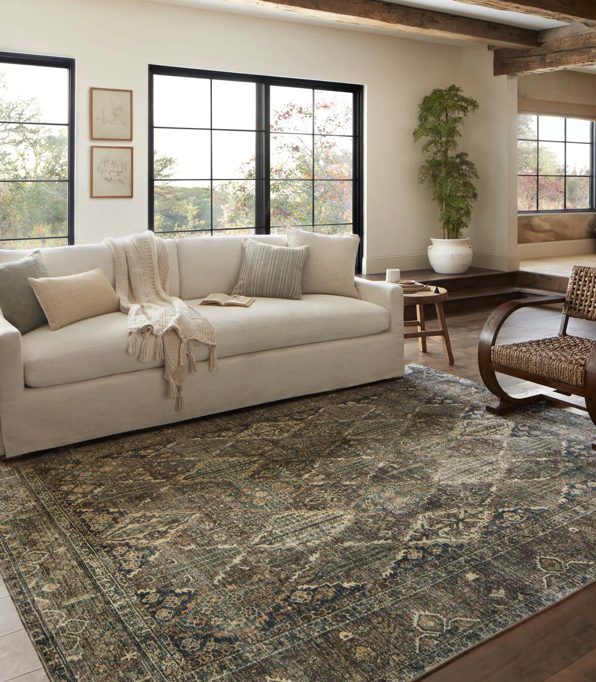 Clean spills immediately by blotting with a clean, dry sponge or cloth. When needed, machine wash in coldwater on delicate cycle using a mild, non-bleach detergent. Hang to dry or tumble dry using the delicate setting. Not all rug sizesfit in all machines. Visit the product page on loloirugs.com for more care instructions.A rug pad is highly recommended on all surfaces to prevent slipping, add cushion, and improve durability. For vacuuming, use avacuum cleaner without a beater bar or set the bar to the highest pile setting. If your vacuum has variable power settings, set onlow. Vacuum full length of the rug, turn and repeat to the next area, rather than a back and forth motion.