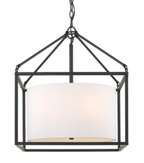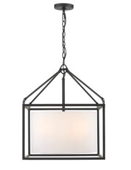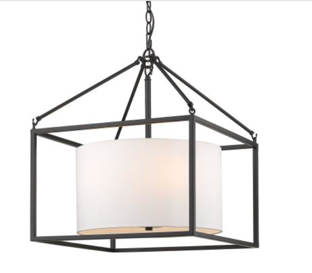 This simple and versatile look is at home in transitional to modern settings. The smooth, matte black finish adds a contemporary feel. The neutral white shade dresses up the look, while softening the geometric lines and gently diffusing the light. Easily customize the height of the fixture to suit your installation needs. The 3-light and 5-light pendants create an elegant pool of light over an intimate dining area or breakfast nook.