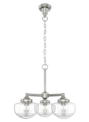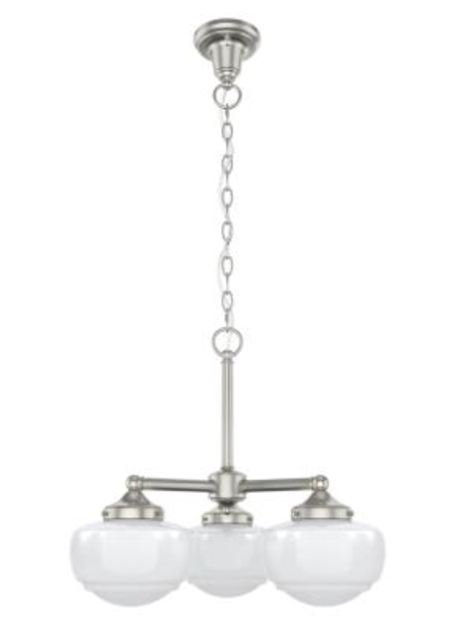 Traditional design meets schoolhouse style. Inspired by the iconic American schoolhouse light, our Creek convertible chandelier features a trio of glass-globed shades designed to delight from any height. Choice of finish and cased white or clear seeded glass lets you tailor this lighting fixture to your taste and existing decor. Mix and match with other fixtures from this collection or from our ceiling fan designs.