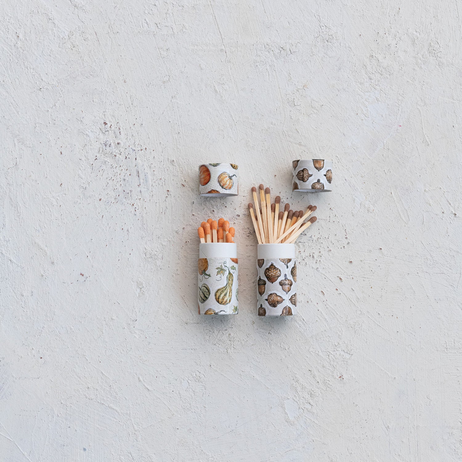 2-1/2"L Safety Matches in Tube Matchbox w/ Fall Seasonal Pattern, Multi Color, 2 Styles Sold Individually