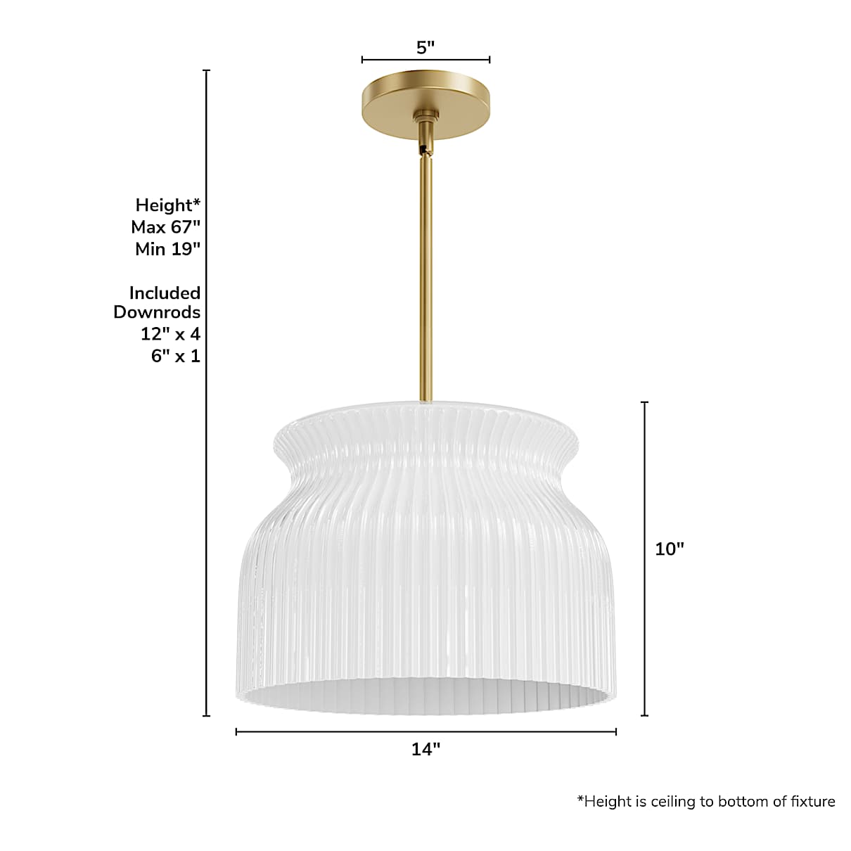 Brighten your décor with the Harlowe 1 Light Pendant in Luxe Gold from the Jasmine Roth Collection. Perfectly blending casual transitional style with modern elegance, this pendant features high-quality ribbed milk glass that ensures even light distribution and is scratch-resistant for lasting beauty. Ideal for hanging in multiples over a kitchen island or as a statement piece above a small table, the Harlowe pendant adds a touch of sophistication and warmth to any setting.