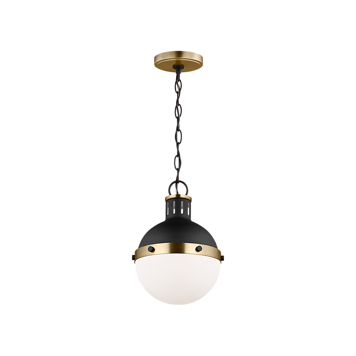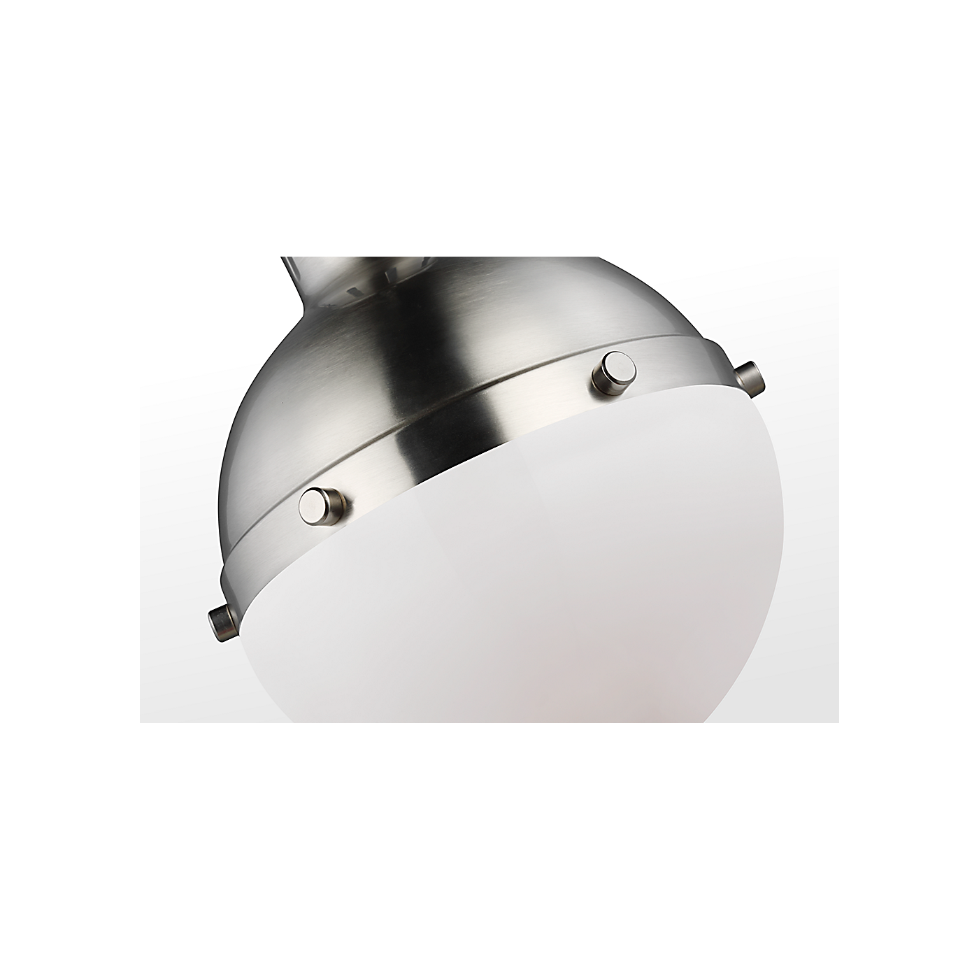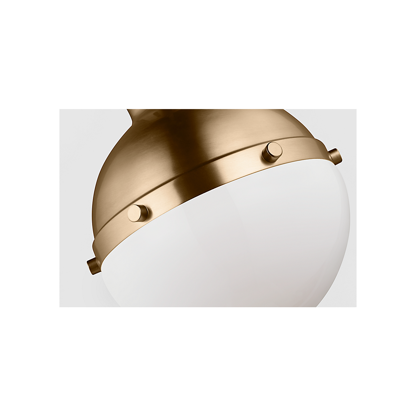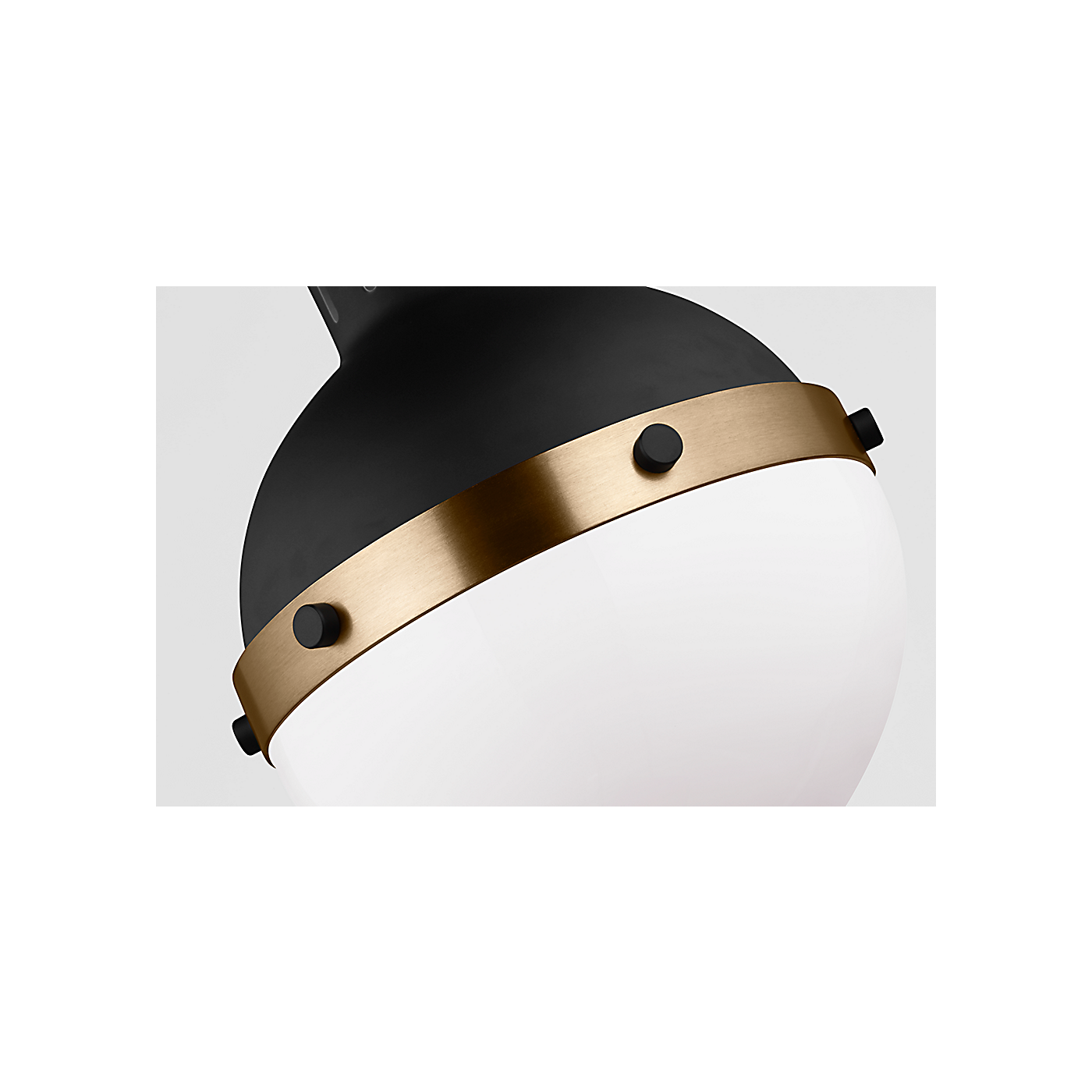 The clean spherical shape adds modernist appeal, while the rivets bronze finish evoke industrial style