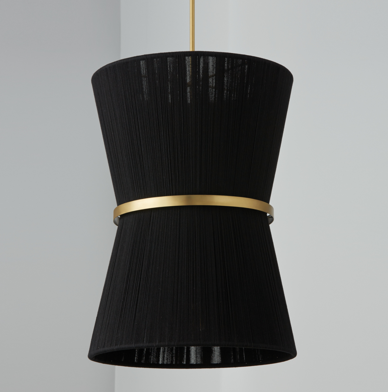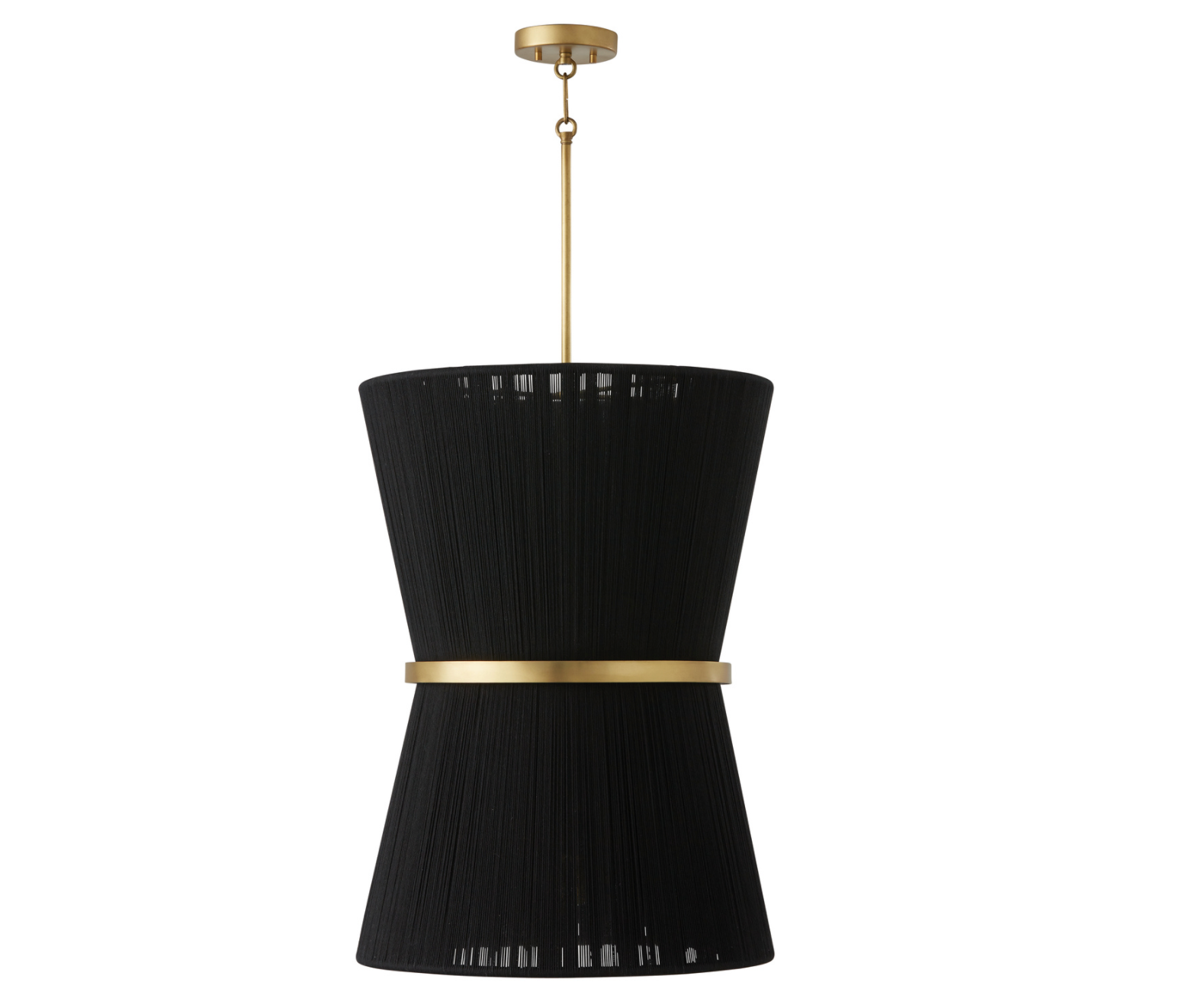 The classic shape of the Kylo 6-Light Pendant is reminiscent of old Hollywood style. The honey-toned, patina Brass band accentuates the artisan loomed hourglass silhouette made of bleached rope for eye-catching elegance. Also available in black rope.