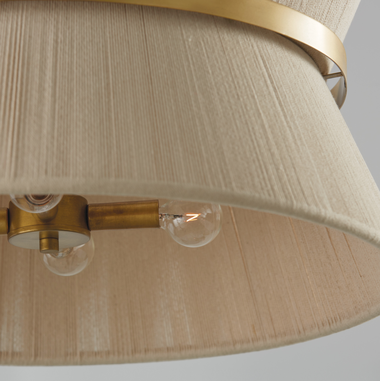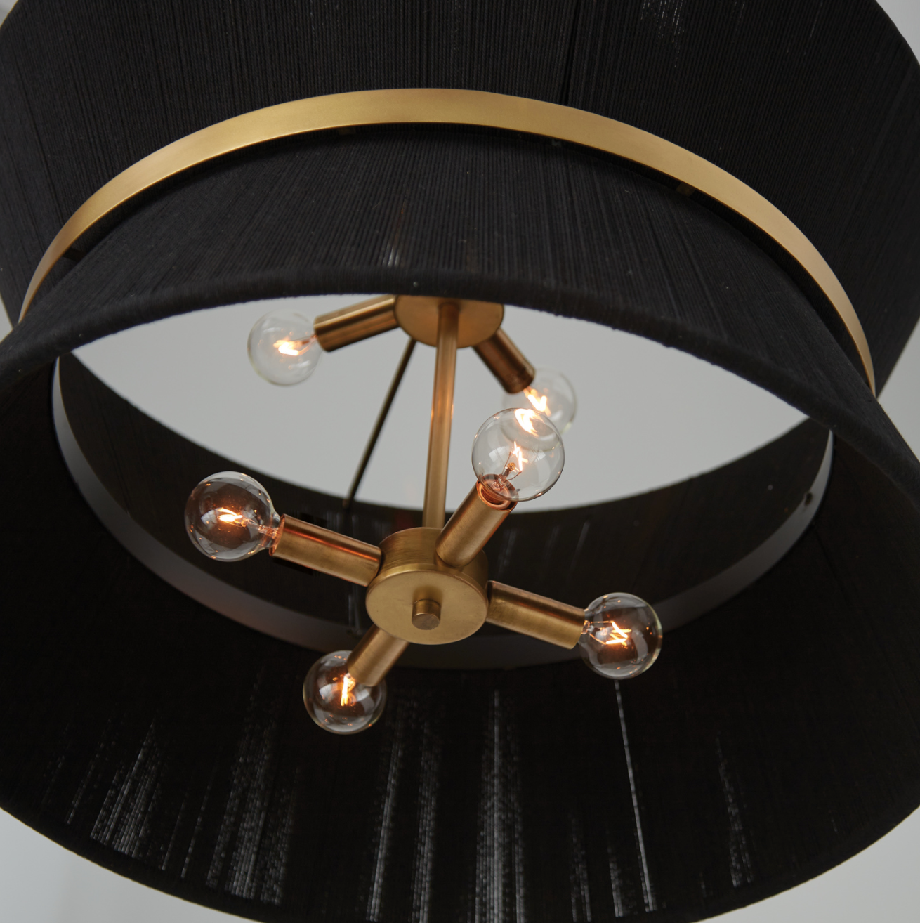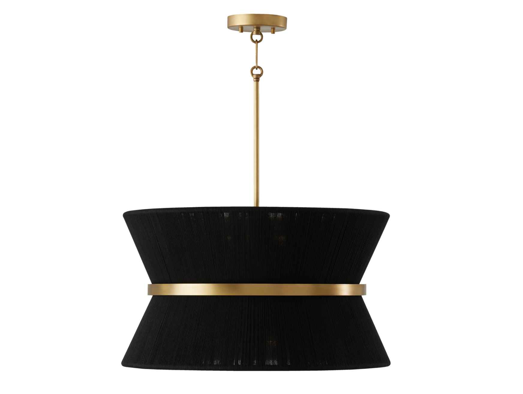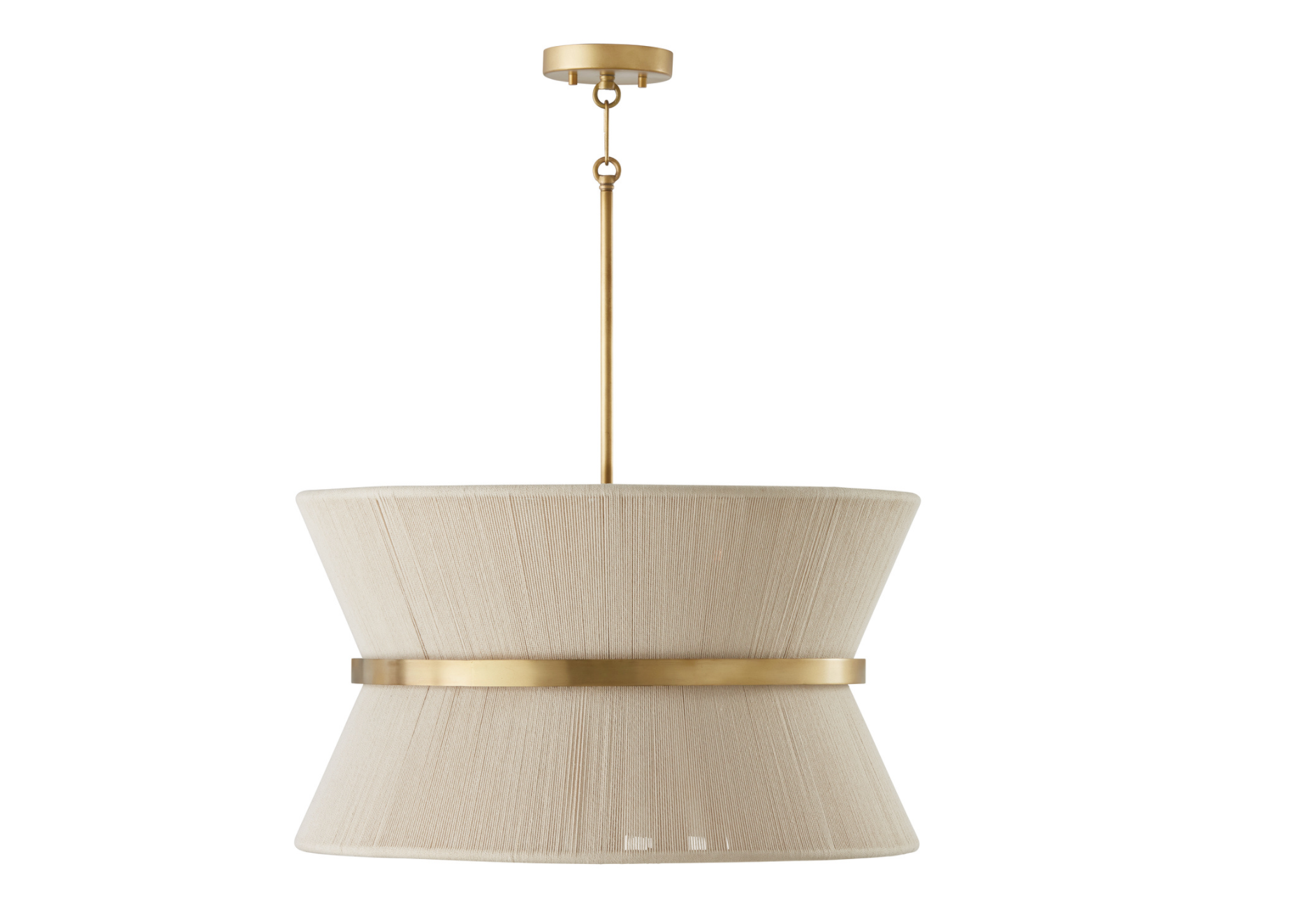 The classic shape of the Kylo 8-Light Pendant is reminiscent of old Hollywood style. The honey-toned, patina Brass band accentuates the artisan loomed hourglass silhouette made of bleached rope for eye-catching elegance. Also available in black rope.