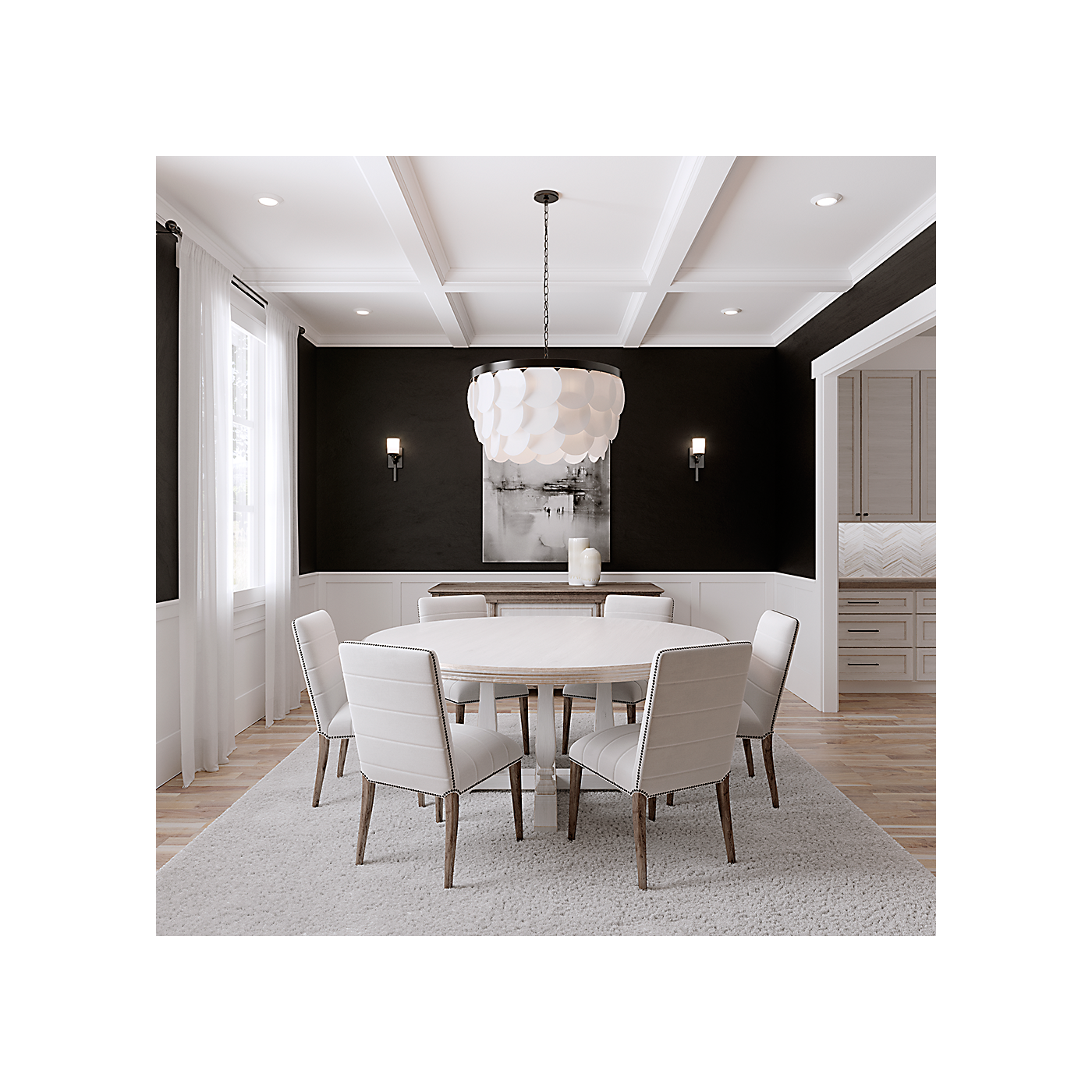 Full of structure and movement the Mellita chandelier gracefully positions multiple tiers of oversized etched glass disks.