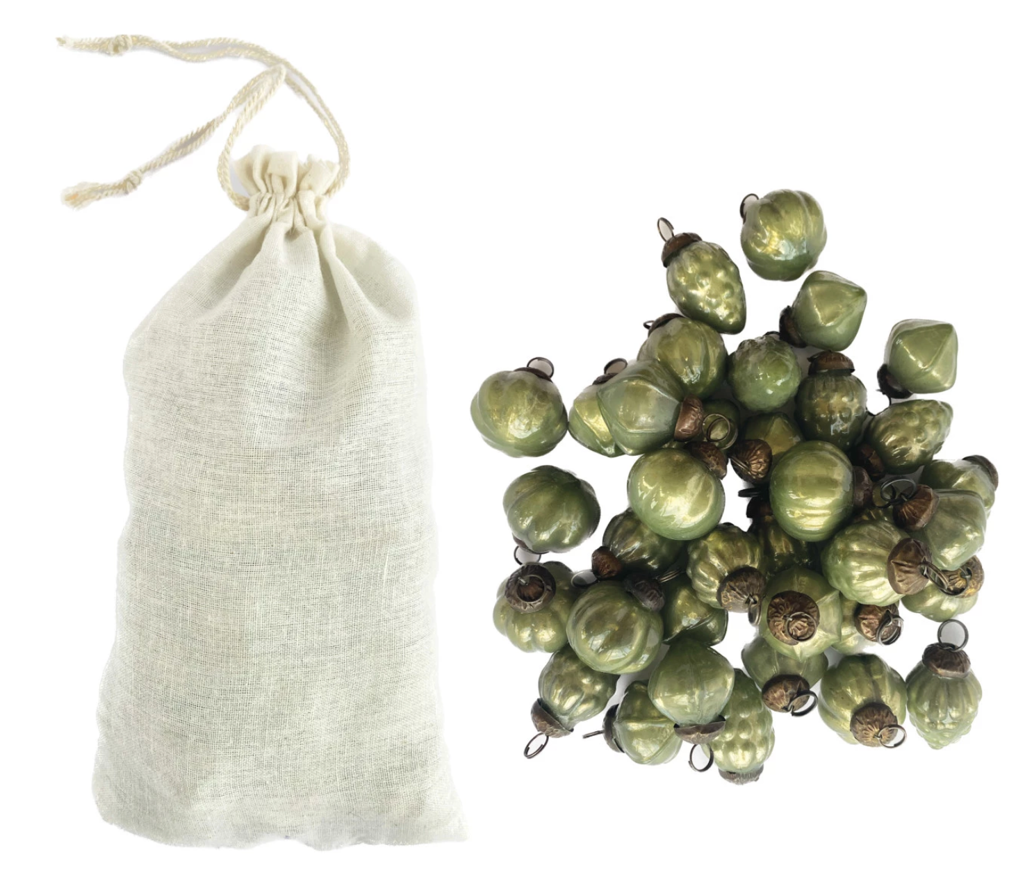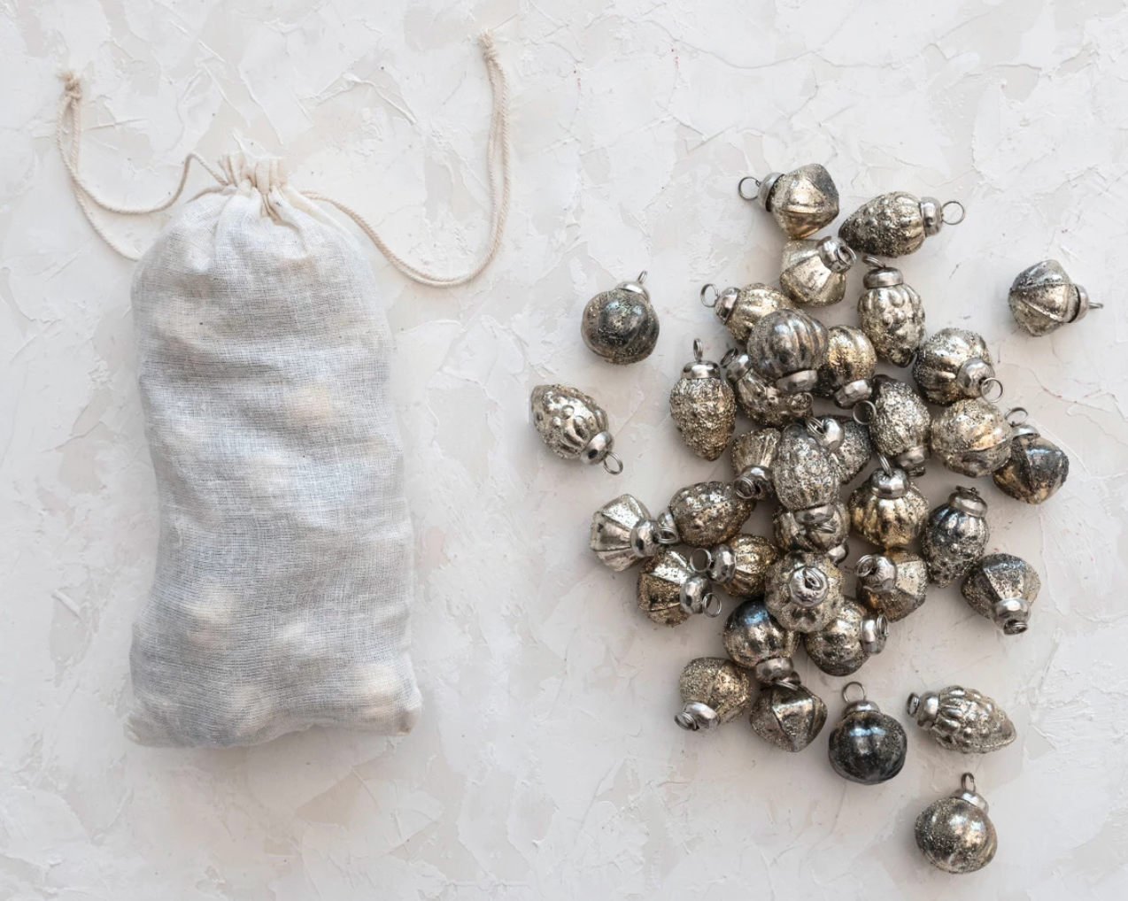 This set of 36 glass ornaments in a bag exudes the warmth and energy of a crisp winter day with its rich red and green color, antique silver, antique gold or greens. Each 1-inch-high ornament is a miniature globe of joy, ready to infuse the space with a festive spirit. Whether strung across a mantelpiece, nestled among the greenery of a wreath, or hanging from the branches of a Christmas tree, these glass baubles catch the light and the eye, promising to be a delightful addition to the holiday decor. Their uniform size and convenient packaging make them easy to store and even easier to display, ensuring they'll be a go-to choice for seasons to come.