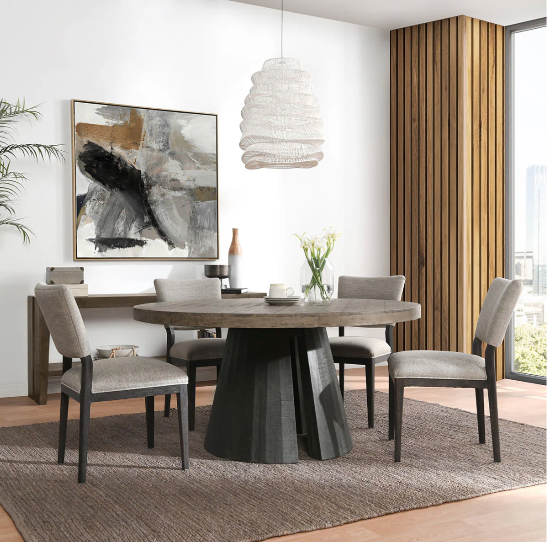 The Phill Dining Chair features a comfortable linen blend fabric and a solid wood frame with tapered legs. Its simple yet elegant design makes it a versatile addition to any dining space. The chair offers both style and durability, providing a supportive seat with a timeless look that complements various décor styles.