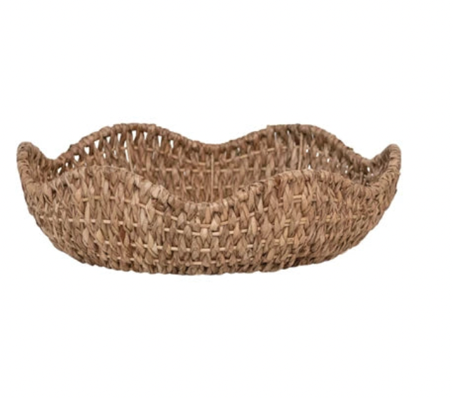 15" Round x 4-1/4"H & 13" Round x 4"H Decorative Braided Bankuan Scalloped Bowls, Natural,