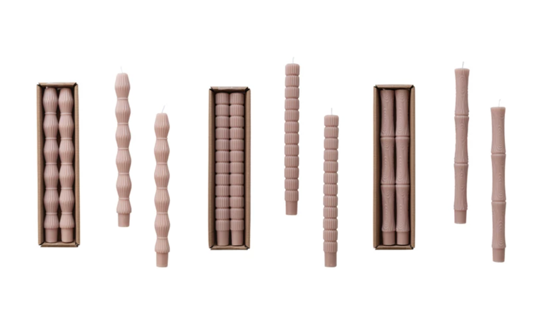 3-1/4"L x 1-3/4"W x 10-1/4"H Unscented Sculpted Taper Candles, Grey, Set of 2 (Approximate Burn Time 8 Hours)