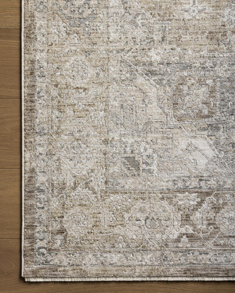 Designed in an expertly distressed antique style, the Blake Collection by Angela Rose x Loloi features traditional motifs that have softened into the background, making it an effortless neutral in any room. Muted earth-toned palettes complement a range of furniture, while subtle cream-colored fringe at the edges add texture and framing. The Blake Collection is power-loomed in Turkey of 100% polyester pile.