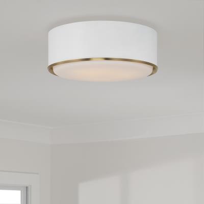 Sleek and sophisticated, The Landing Semi Flush has a unique, almost-flush design. The Matte Black or White metal band rests on top of a Matte Brass ring for a hint of shine, and the Soft White glass creates a soft glow for this updated Flush Mount look.