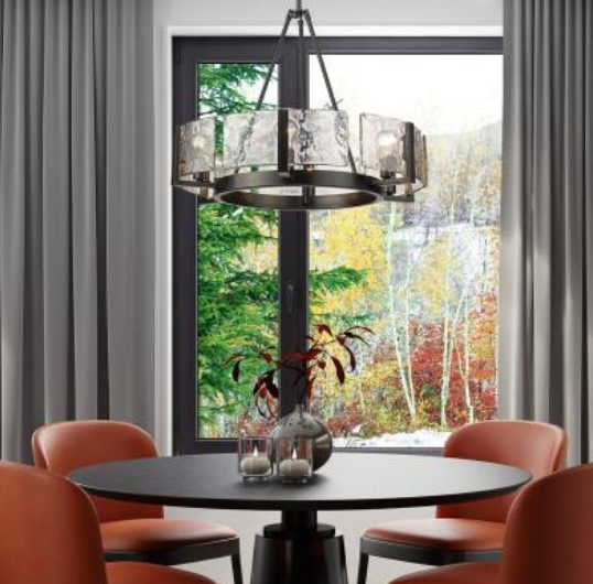 Vale's universal style positions the series as a contemporary design perfect for transitional to modern homes. The striking Hammered Water Glass draws the eye and quickly becomes a topic of conversation and admiration. Strong masculine steel arms cradle Vale's unique glass panels, suspending them mid-air. When lit, the Hammered Water Glass contrasts the contemporary finishes and reflect the bright light. Choose between multiple fixture types and finish options.