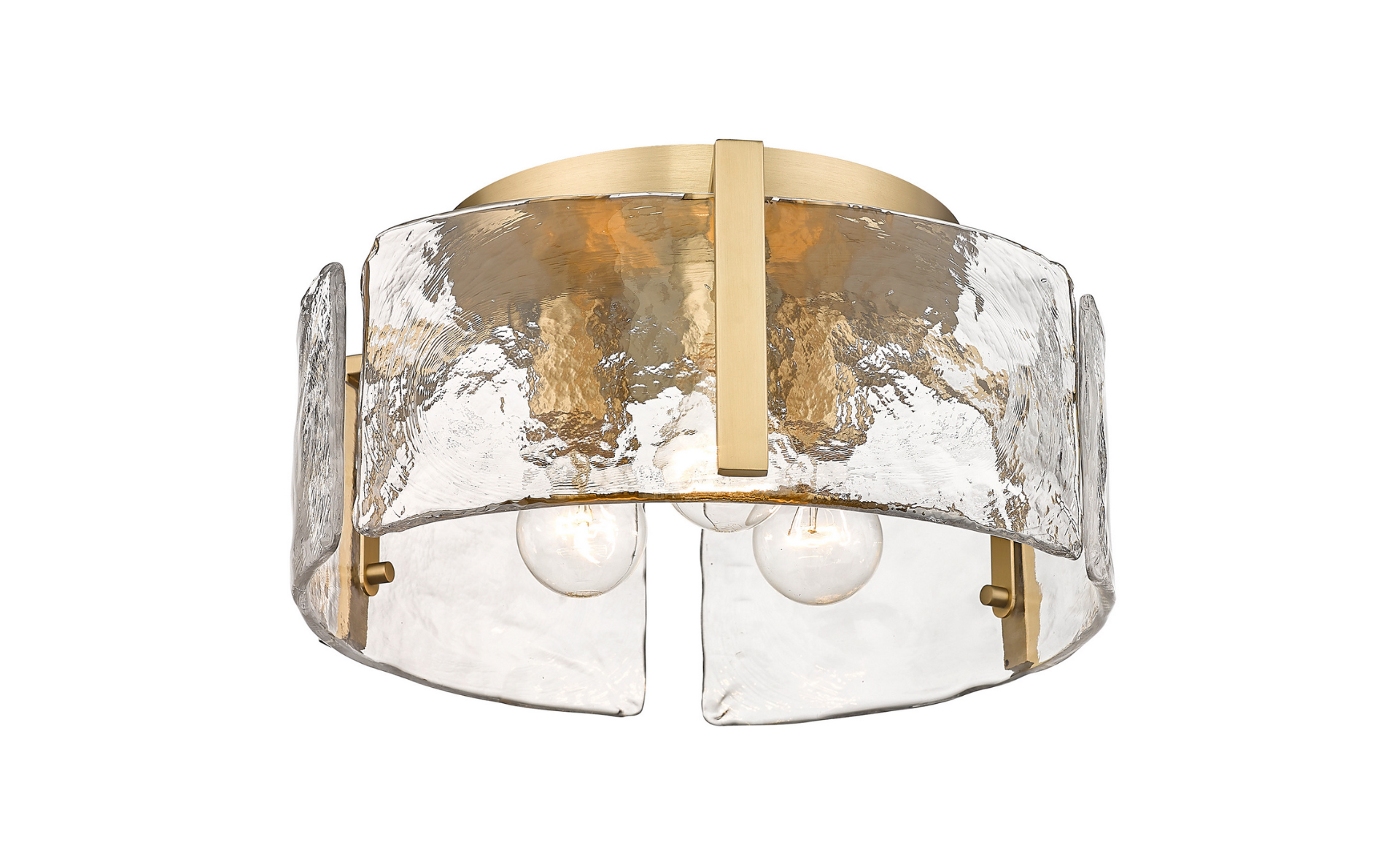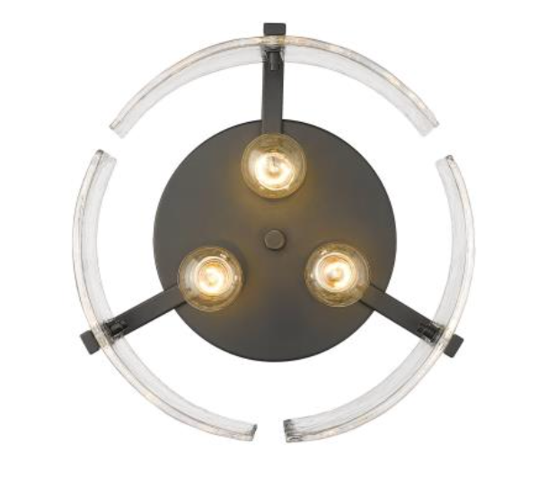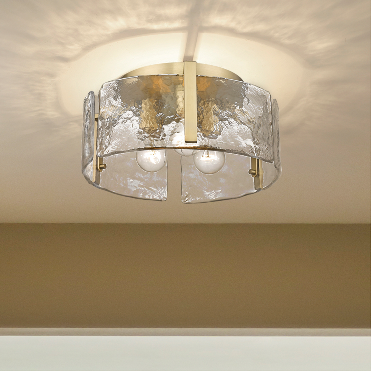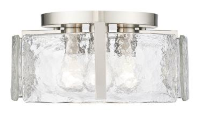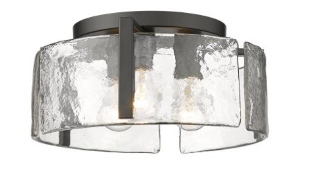 Vale's universal style positions the series as a contemporary design that is a perfect fit for transitional to modern homes. The striking Hammered Water Glass draws the eye and quickly becomes a topic of conversation and admiration. Strong masculine steel arms cradle Vale's unique curved glass plates, suspending them in mid-air. When lit, the Hammered Water Glass panels contrast the striking Brushed Champagne Bronze, Pewter or Matte Black finishes and reflect the bright light. Playful shadows created by this glass offer an intimate ambiance.