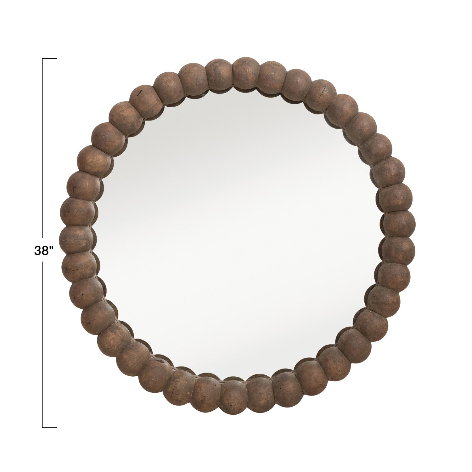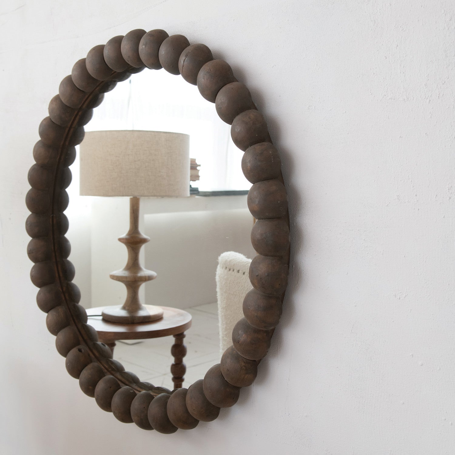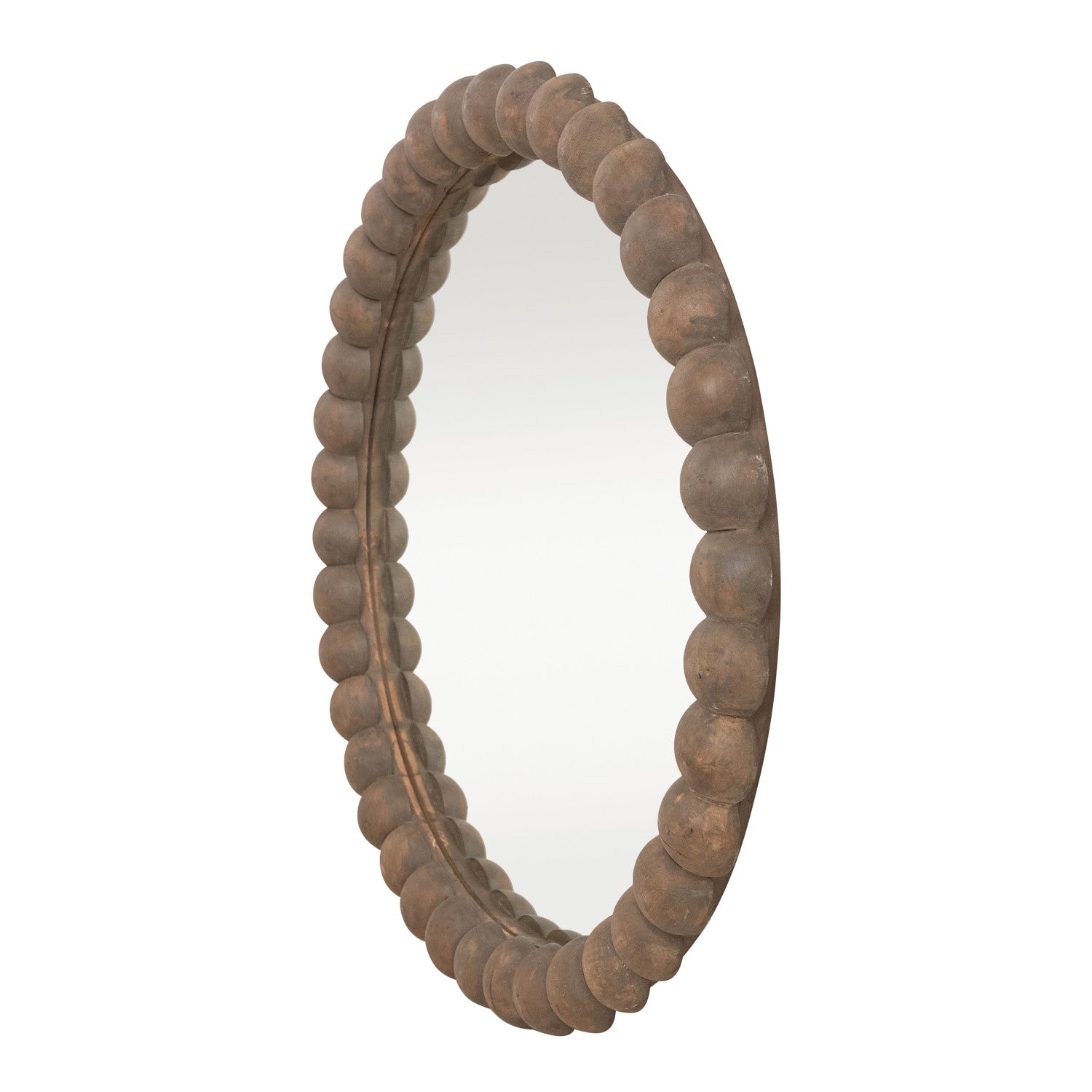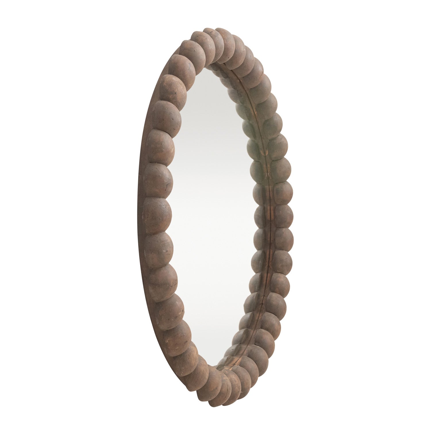 Bring warmth and character to your space with this round wall mirror framed in reclaimed wood bobbin detailing. The softly rounded beads create sculptural texture, while the natural finish highlights the wood’s unique grain and imperfections. Perfect for entryways, bedrooms, or living spaces, this mirror adds rustic charm with a timeless, handcrafted feel.
